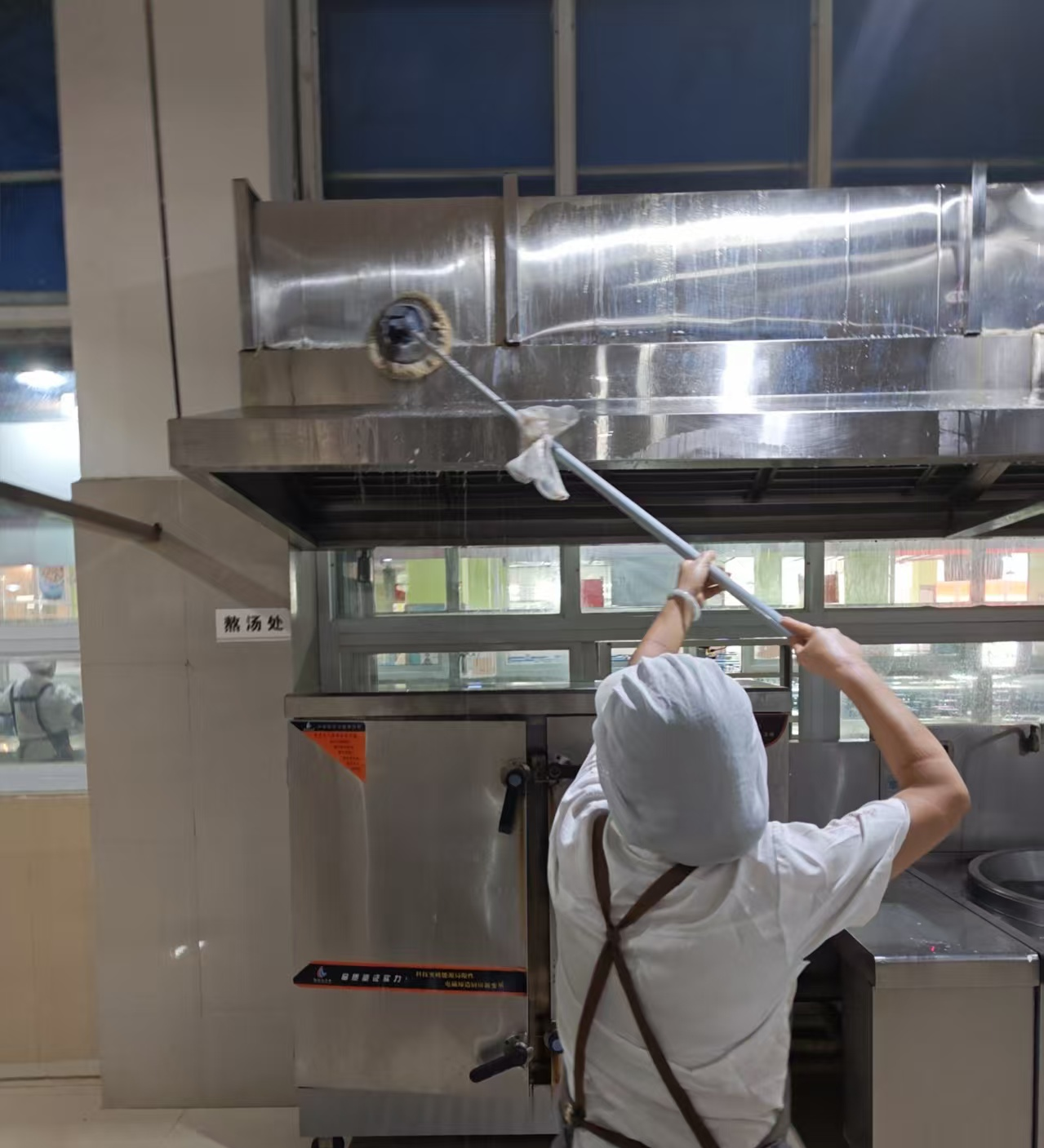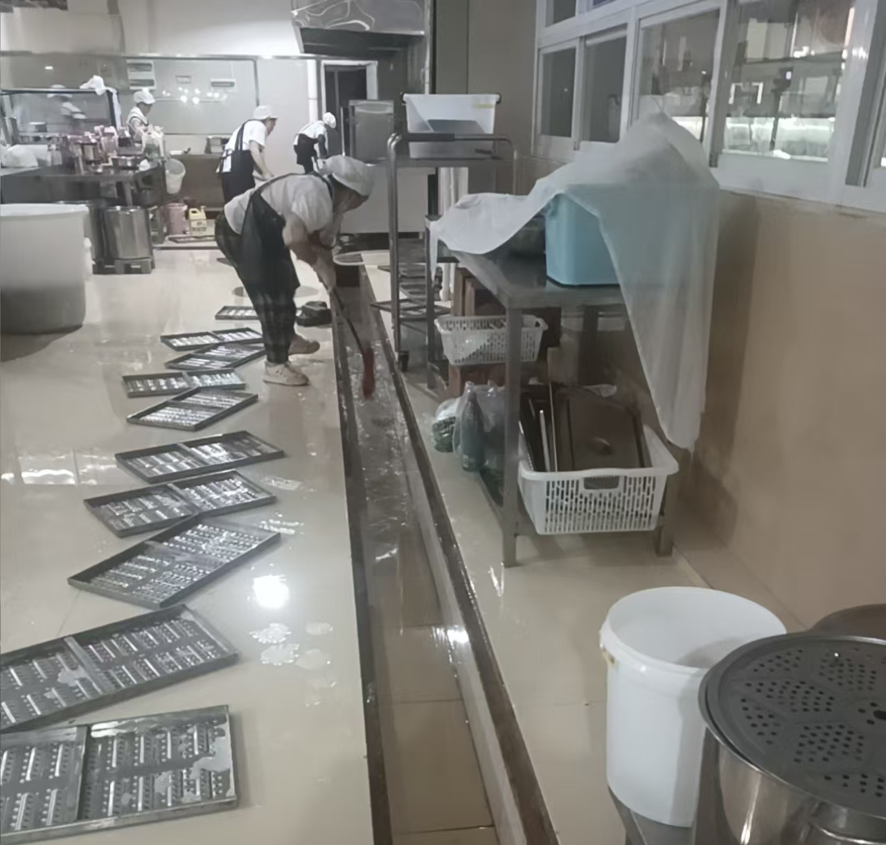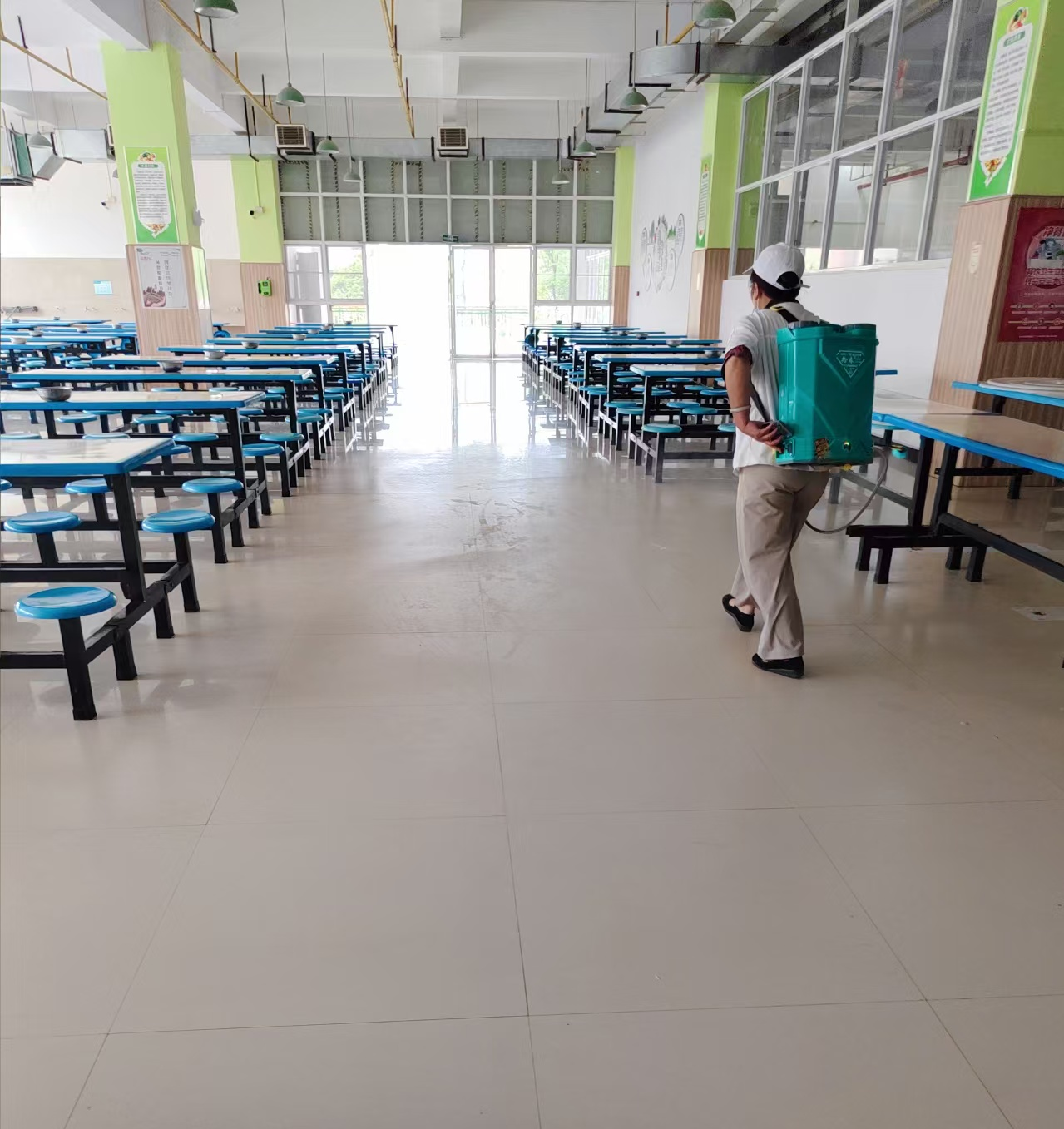 一次大扫除:开学前对后厨操作间、仓库、备餐间、洗碗间、卫生间等进行彻底无死角的大扫除、消杀。