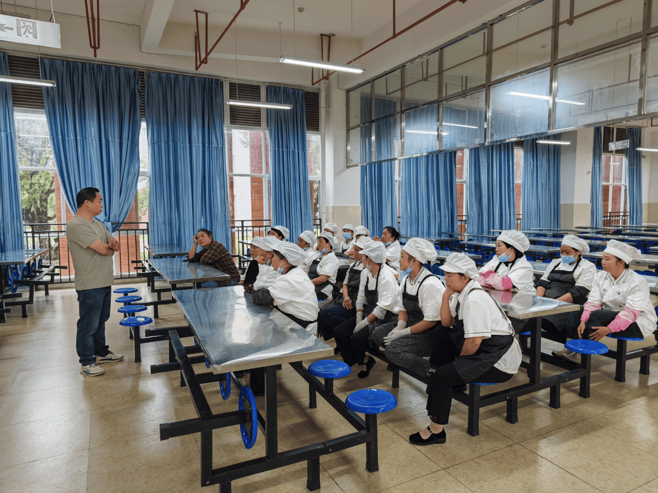 一次培训会:召开食品安全调度会,开展食堂从业人员食品安全知识培训。