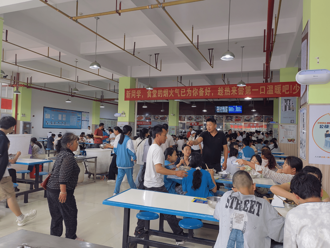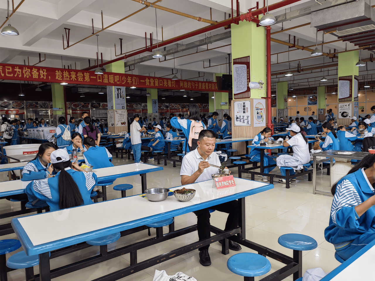 开学第一餐,烟火味与人情味交融。烟火味,源于锅碗瓢盆的碰撞交响,源于新鲜食材在火候与调料催化下散发的诱人香气;人情味,源于温馨的用餐氛围,源于学校的温情关爱,源于“一中”师者的大爱无疆、无微不至,源于“一中”学子的自强不息、互助进取。