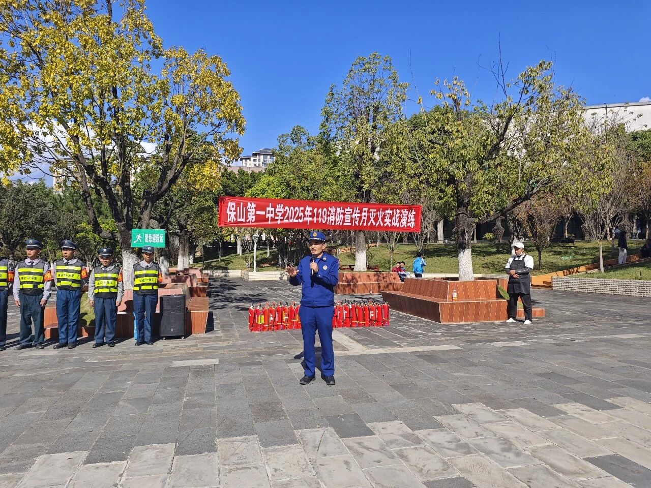 11月,德育安全处副主任张旭龙老师召集安全委员与纪律委员召开专项会议。会议紧紧围绕“全民消防、生命至上——安全用火用电”119 宣传月主题,以消防安全与逃生演练为核心,特别邀请保山市消防救援支队走进校园,开展消防安全宣传培训及实战化演练活动。通过案例分析与流程拆解,帮助委员们厘清应急处置职责,为校园消防安全筑牢“第一道防线”。