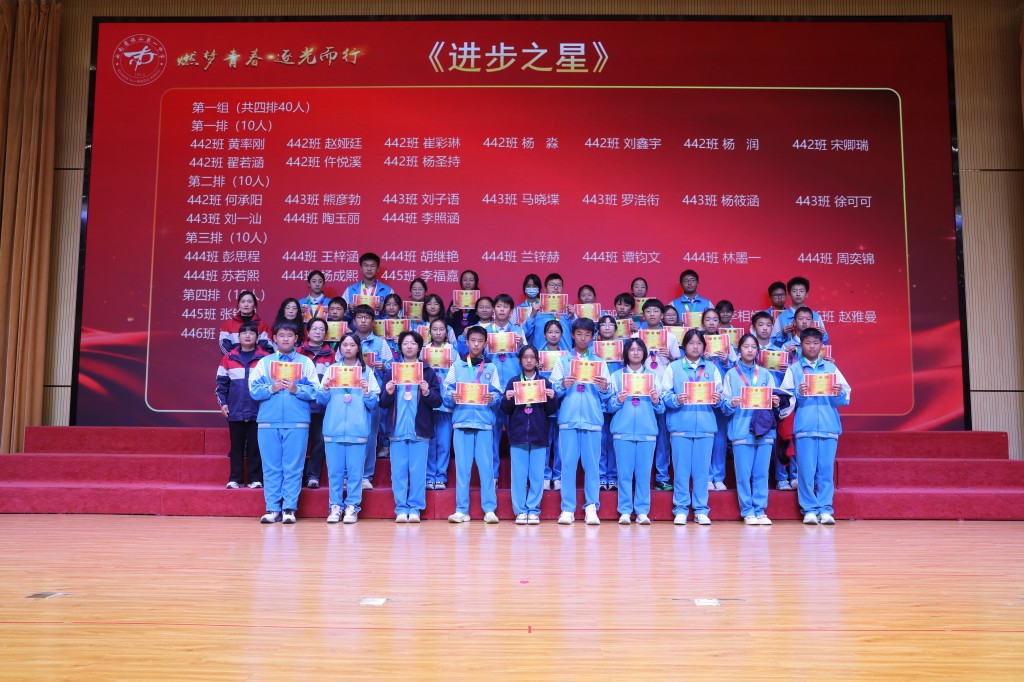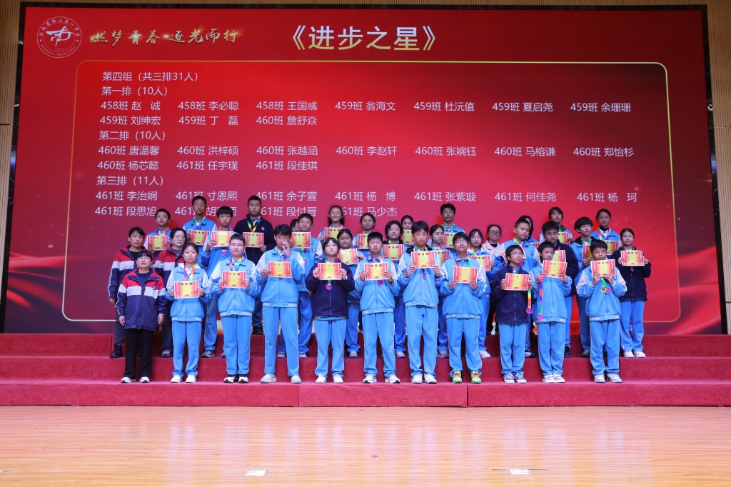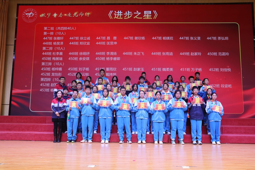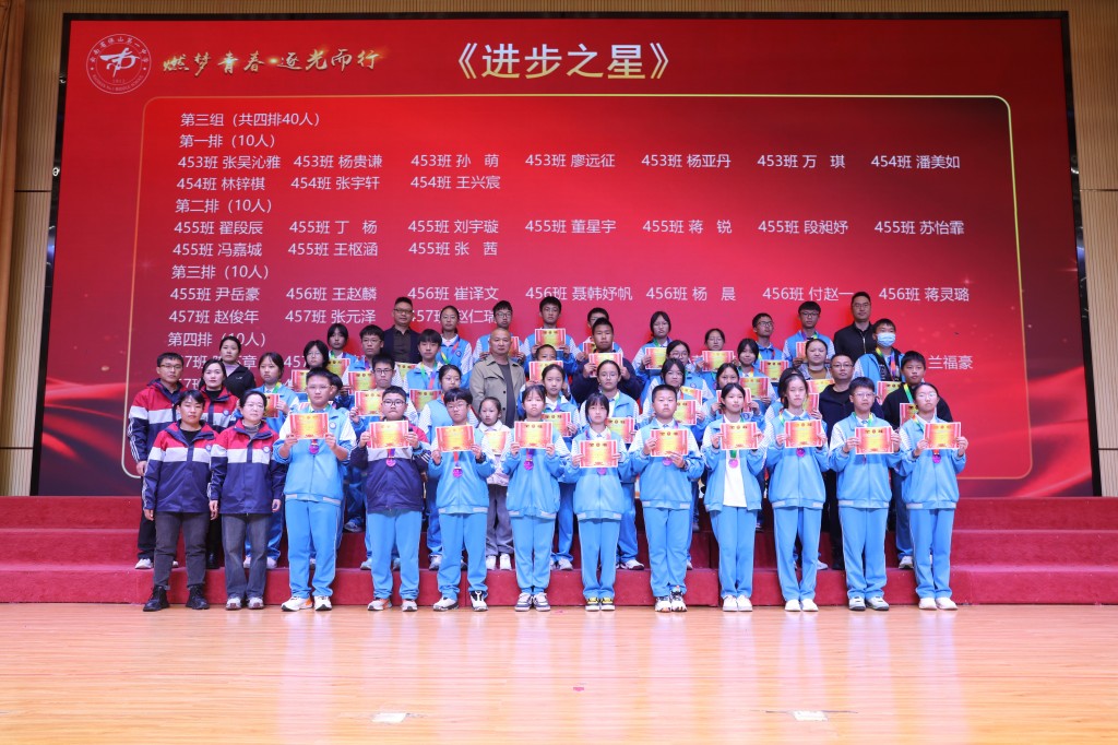 当表扬的掌声落下帷幕,榜样的力量却愈发磅礴。期中的答卷已然封存,但奋斗的征程正翻开新篇!今天,我们接过的不仅是一张张烫金的荣誉证书,也是一种“见贤思齐”的精神接力,更是一份薪火相传的使命担当。让今日所见的优秀,成为明日攀登的基石;让今日所见的卓越,化作未来前行的底气!让此刻燃起的斗志,铸成劈波斩浪的铠甲;让此刻沸腾的热血,化作未来破局的锋芒!