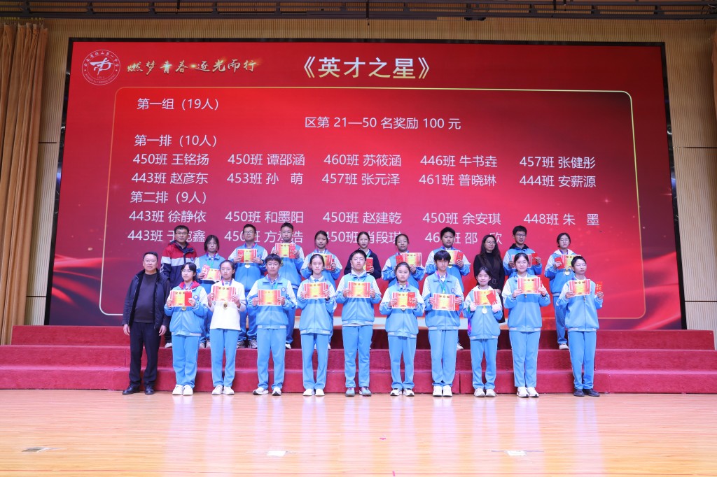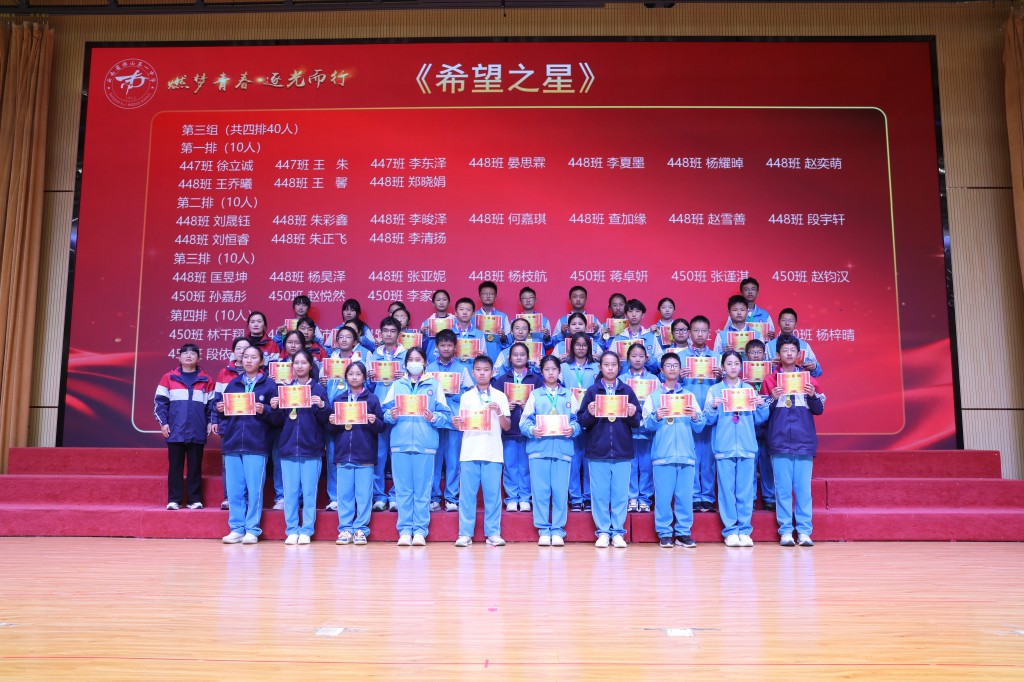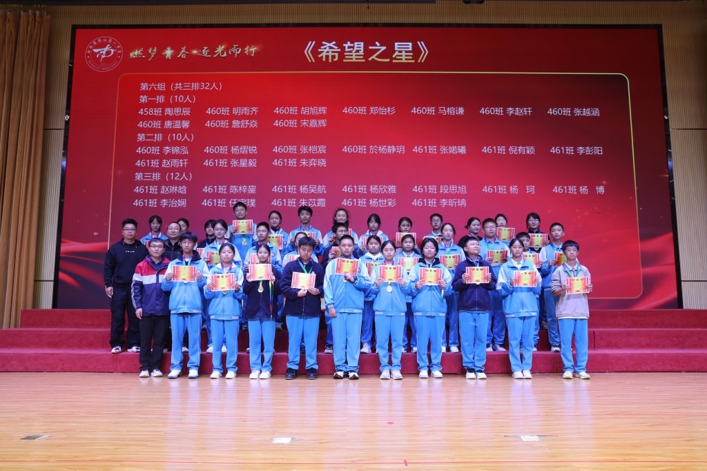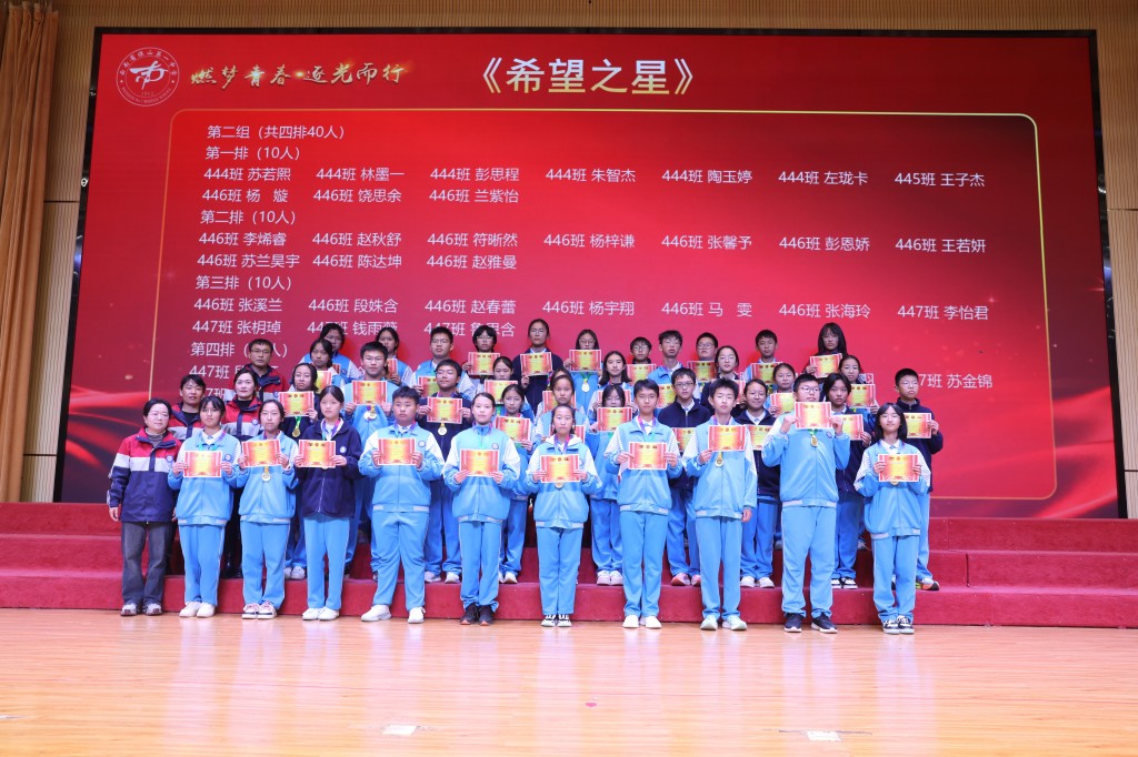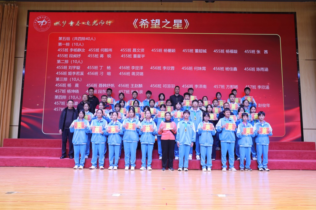 当表扬的掌声落下帷幕,榜样的力量却愈发磅礴。期中的答卷已然封存,但奋斗的征程正翻开新篇!今天,我们接过的不仅是一张张烫金的荣誉证书,也是一种“见贤思齐”的精神接力,更是一份薪火相传的使命担当。让今日所见的优秀,成为明日攀登的基石;让今日所见的卓越,化作未来前行的底气!让此刻燃起的斗志,铸成劈波斩浪的铠甲;让此刻沸腾的热血,化作未来破局的锋芒!