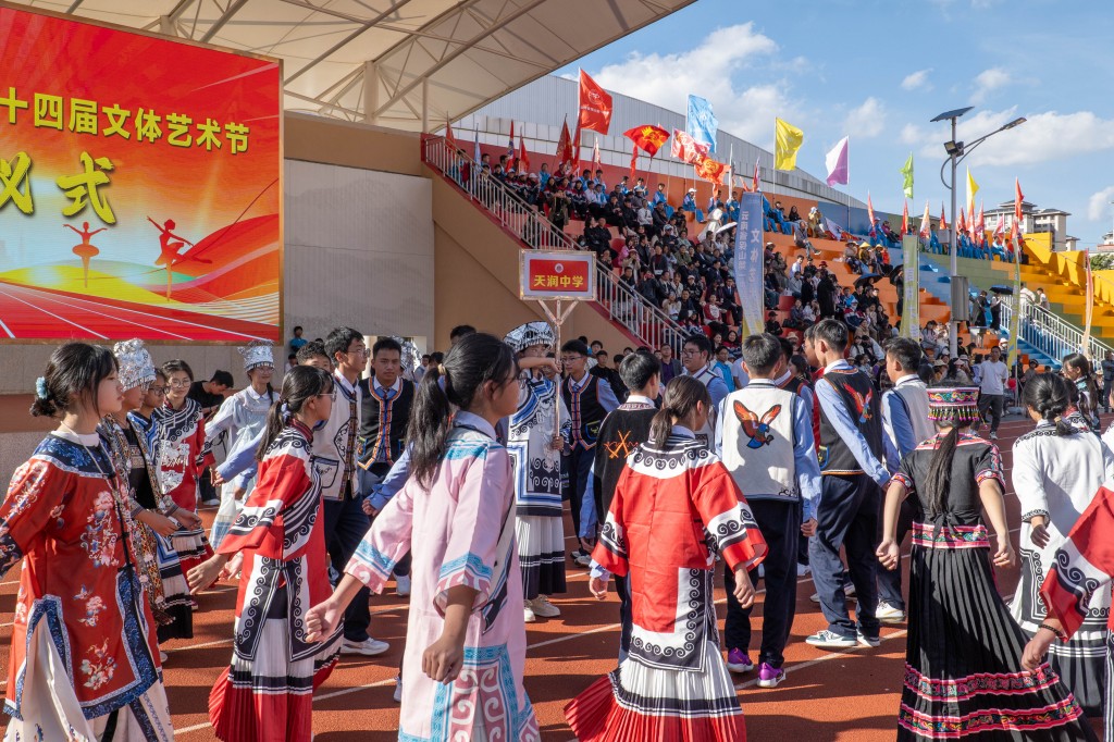 2024年11月25日下午,保山一中第十四届文体艺术节开幕,校本部师生齐聚田径场,本次文体艺术节还诚邀保山天润高级中学的同学们共赴盛会。