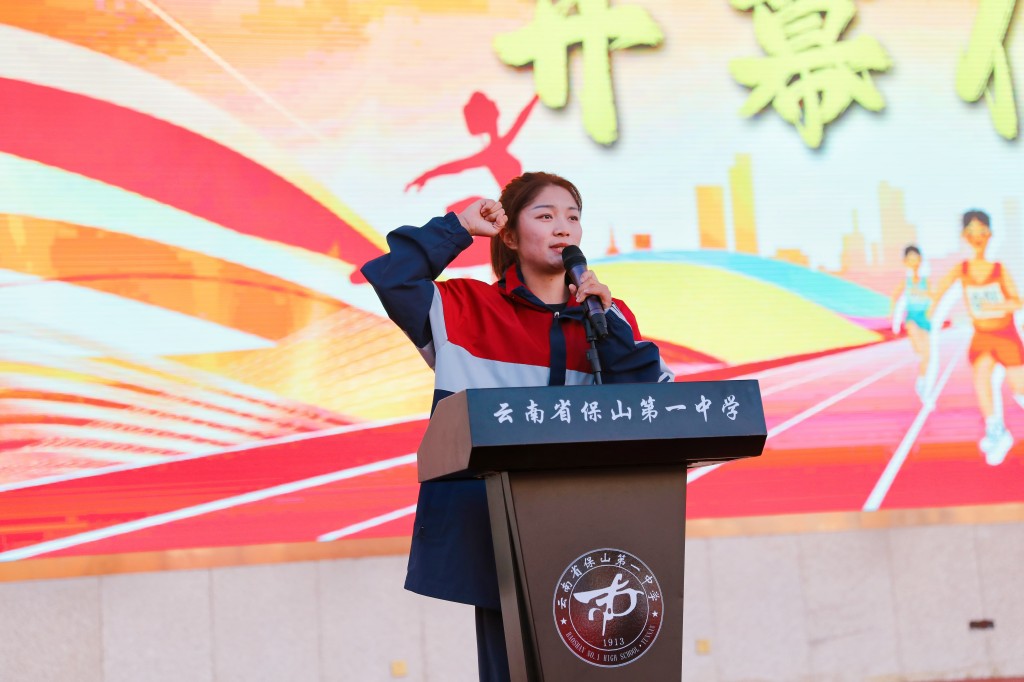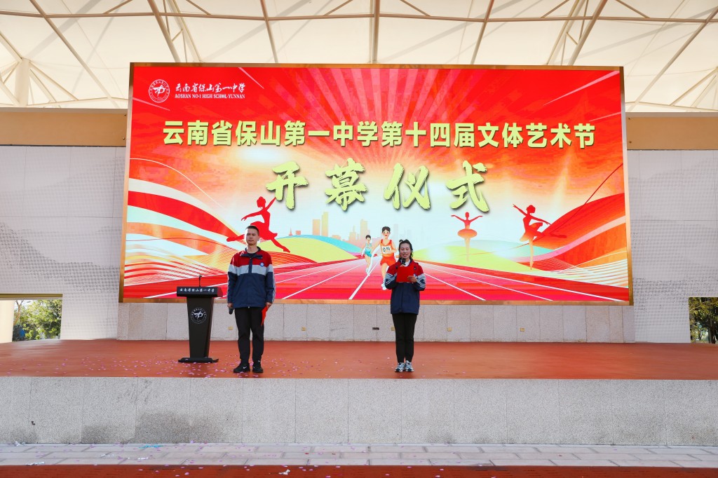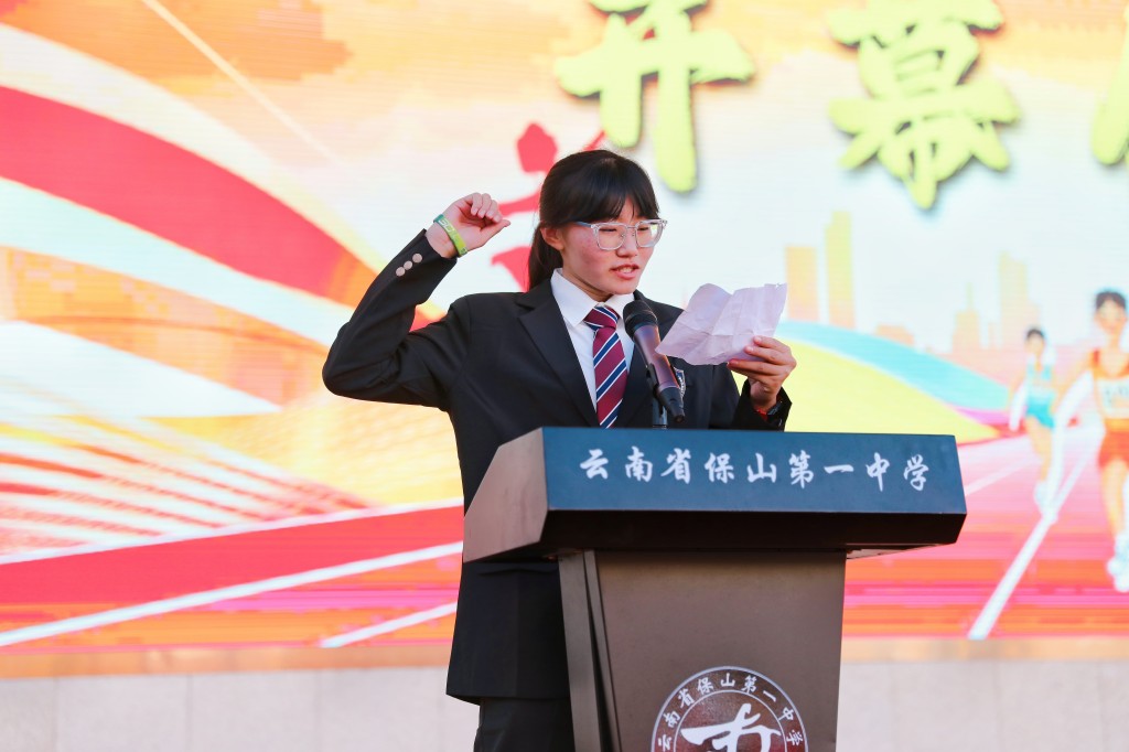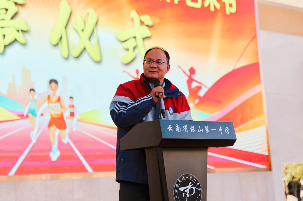 保山一中党委书记李涛为文体艺术节致开幕词,并宣布保山一中第十四届文体艺术节开幕。