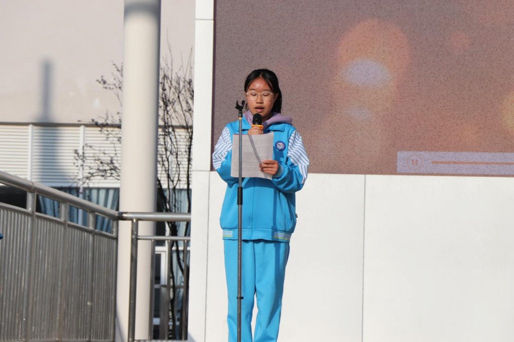 启动仪式上,初中德育处副主任苏炳成老师作了动员讲话,要求同学们认真参与学习雷锋活动,时刻铭记并践行雷锋精神。八年级424班邵姜允婧同学做了“学习雷锋精神,争做国之栋梁”为主题的演讲,呼吁同学们把雷锋吃苦耐劳的精神贯彻到我们的生活和学习中。