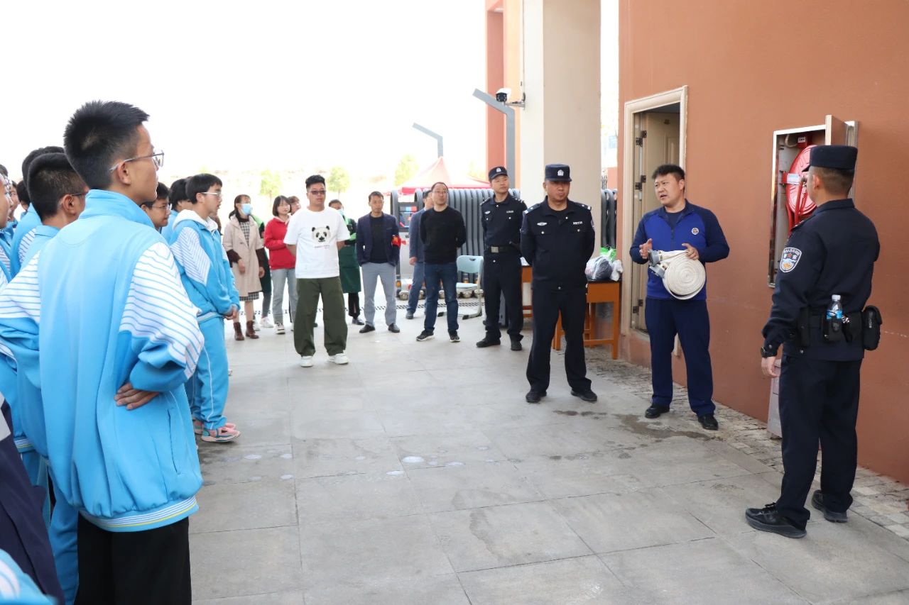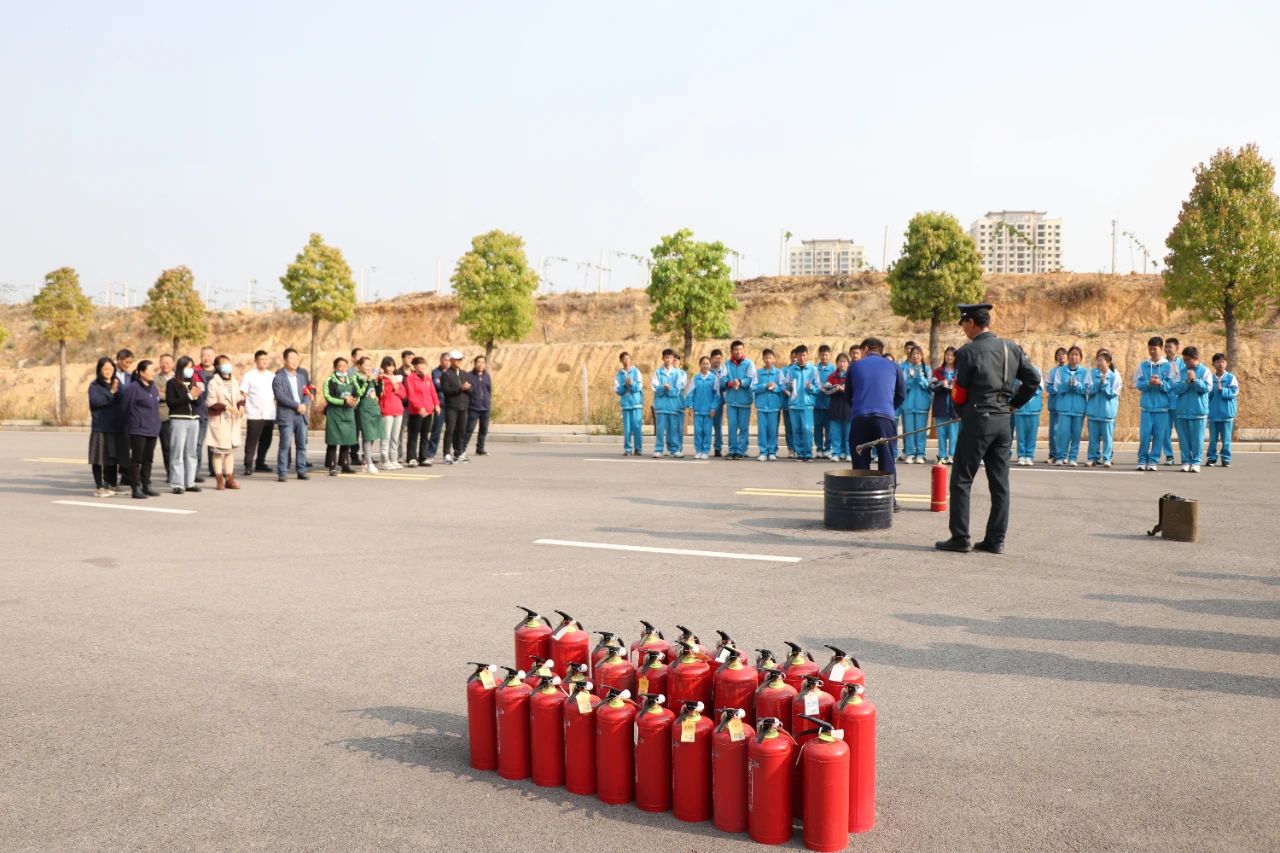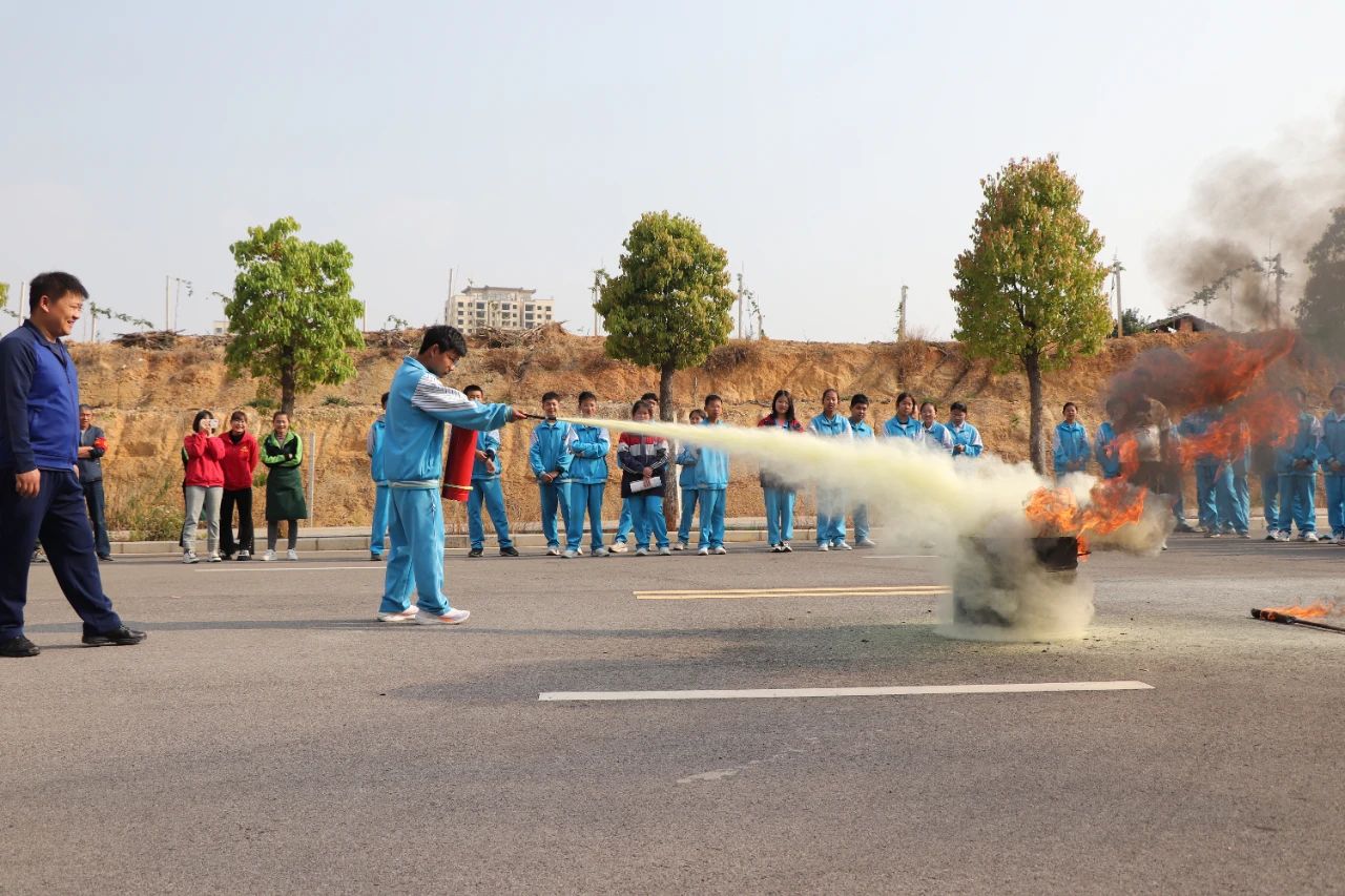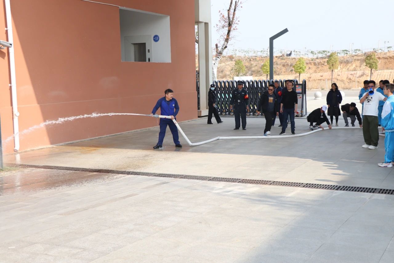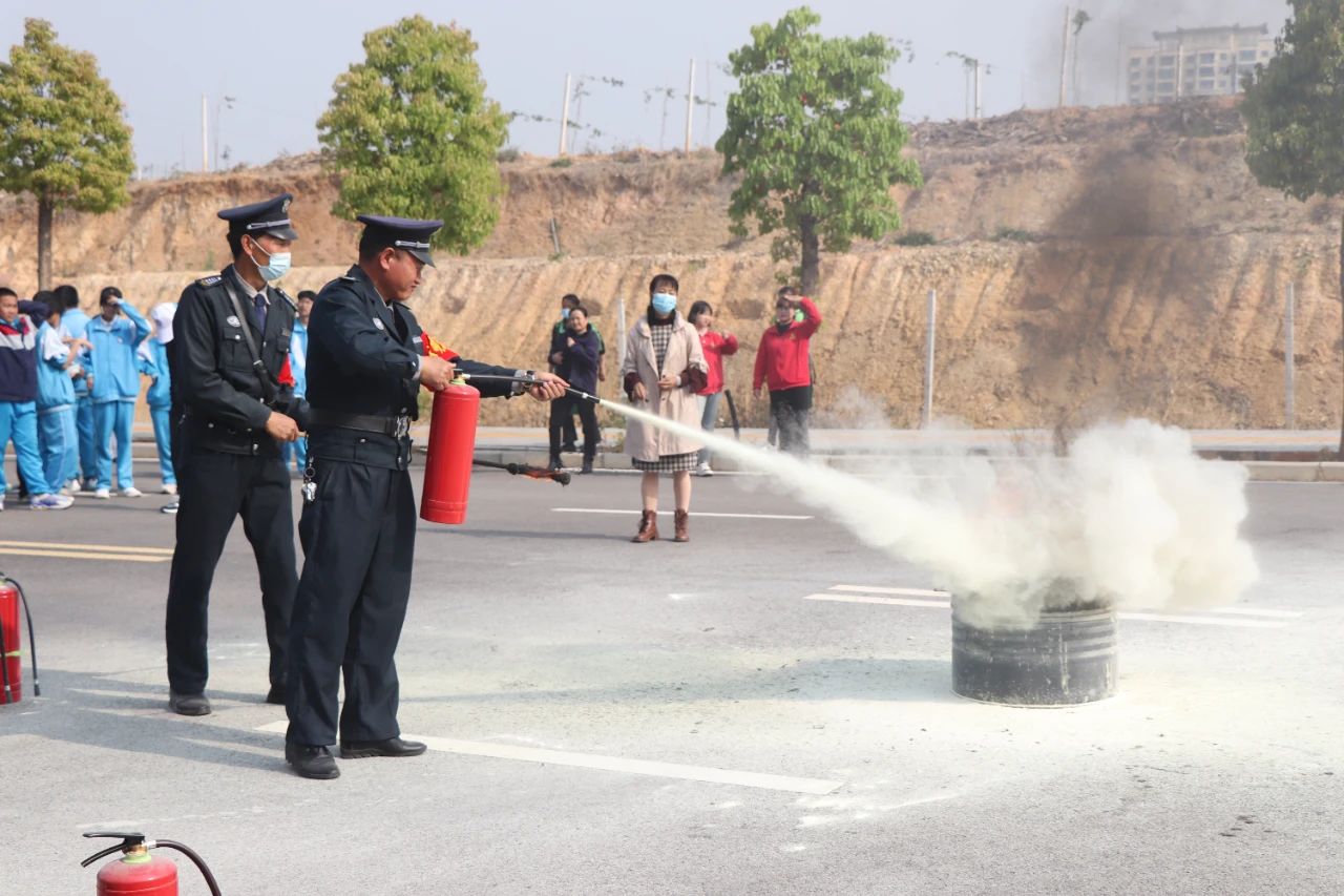 第一阶段消防疏散演练结束后,学校安保人员、食堂和校园超市工作人员、安全员教师以及各班安全委员和班长到学校北大门外面安全区域进行灭火器、消防栓的正确使用演练活动。