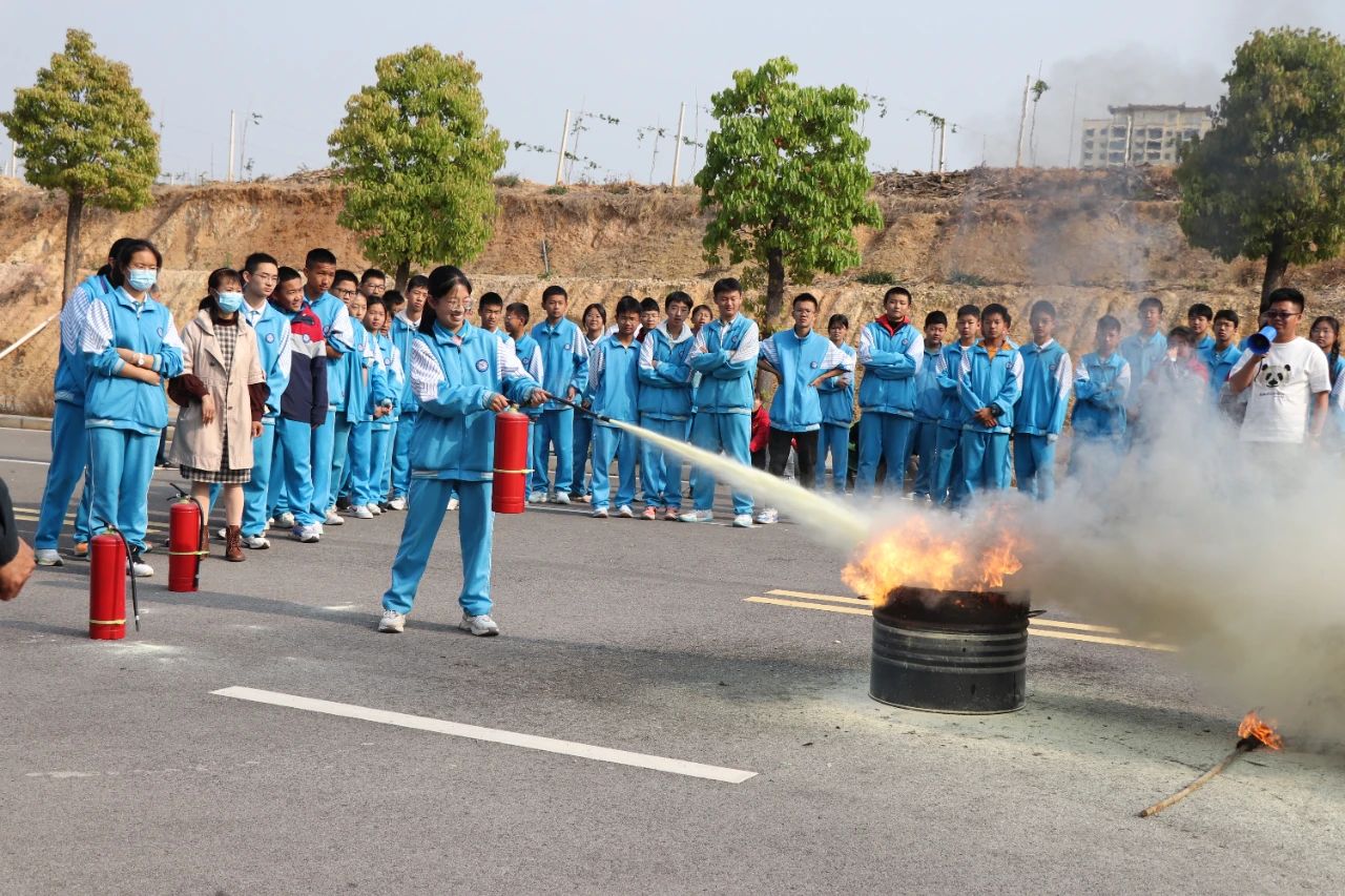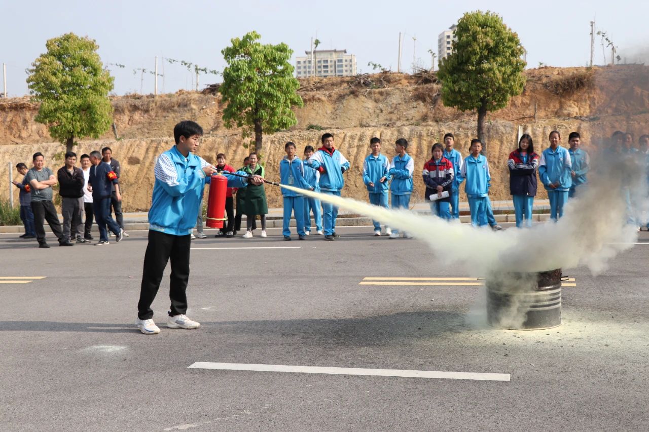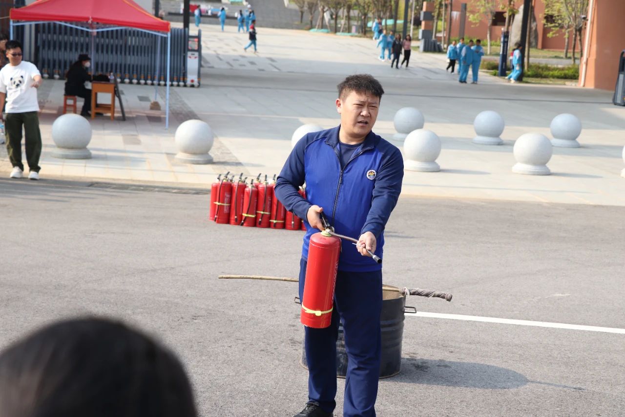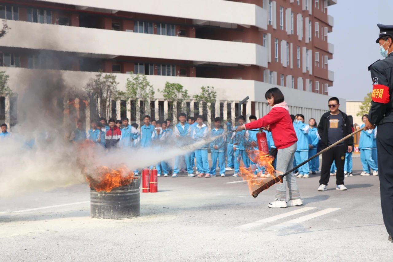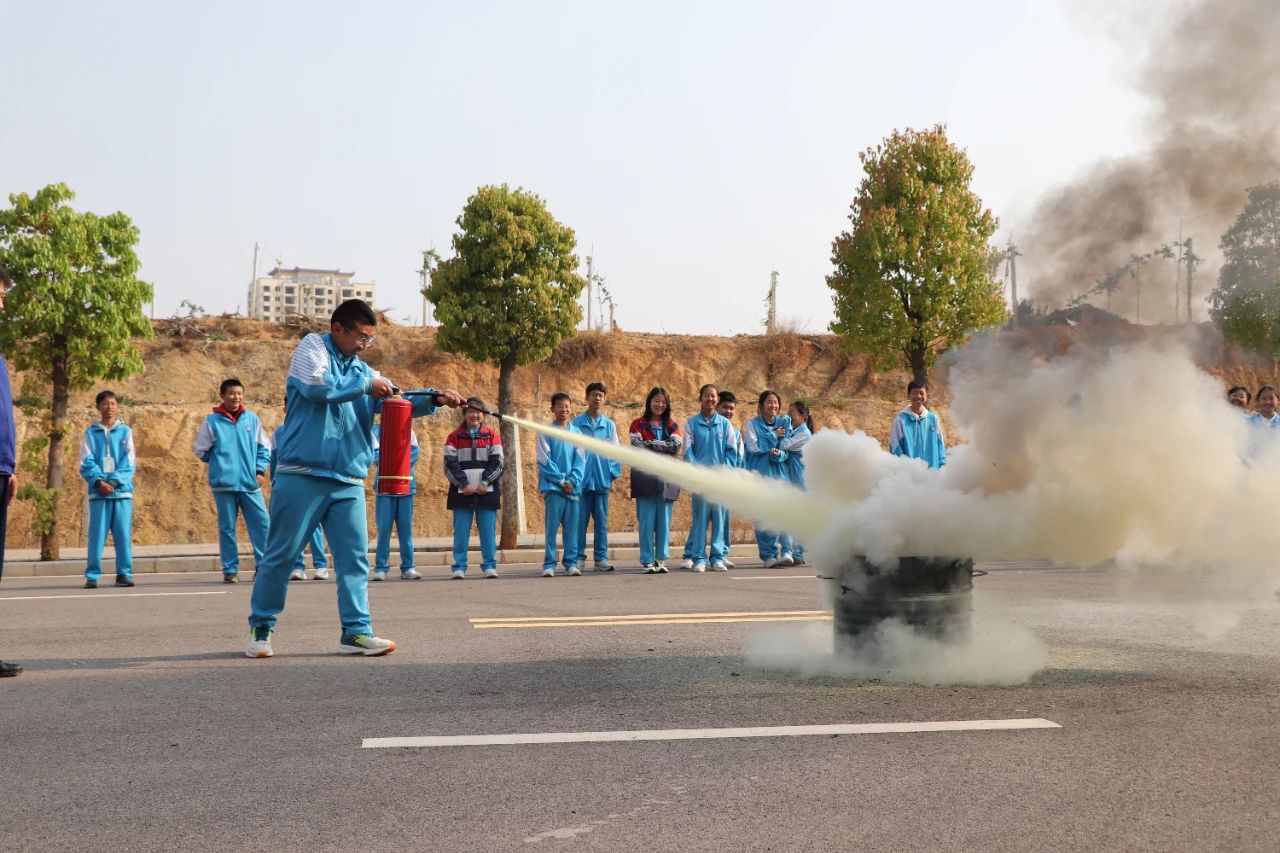 第一阶段消防疏散演练结束后,学校安保人员、食堂和校园超市工作人员、安全员教师以及各班安全委员和班长到学校北大门外面安全区域进行灭火器、消防栓的正确使用演练活动。