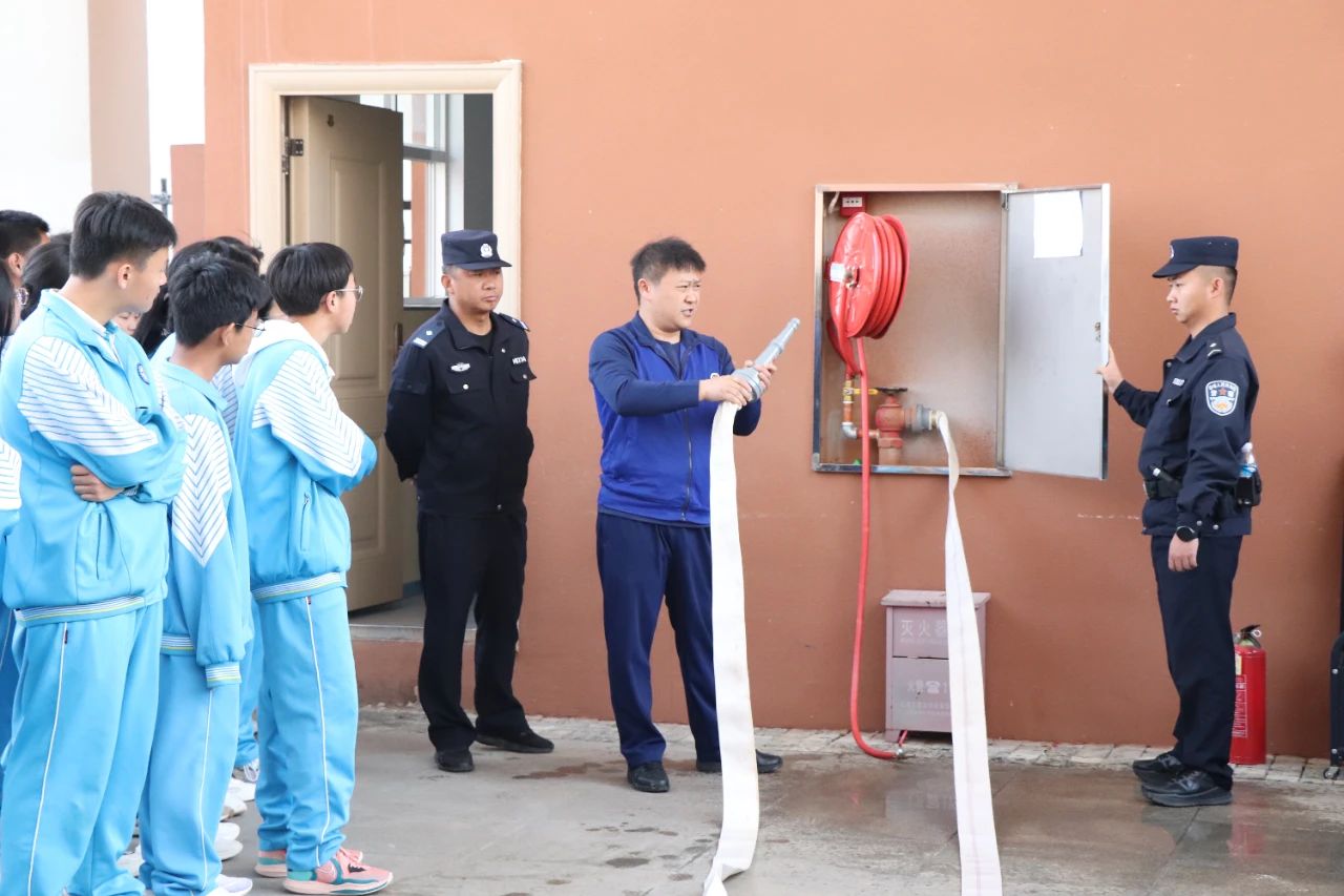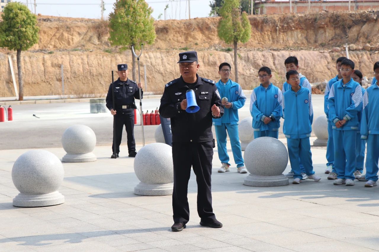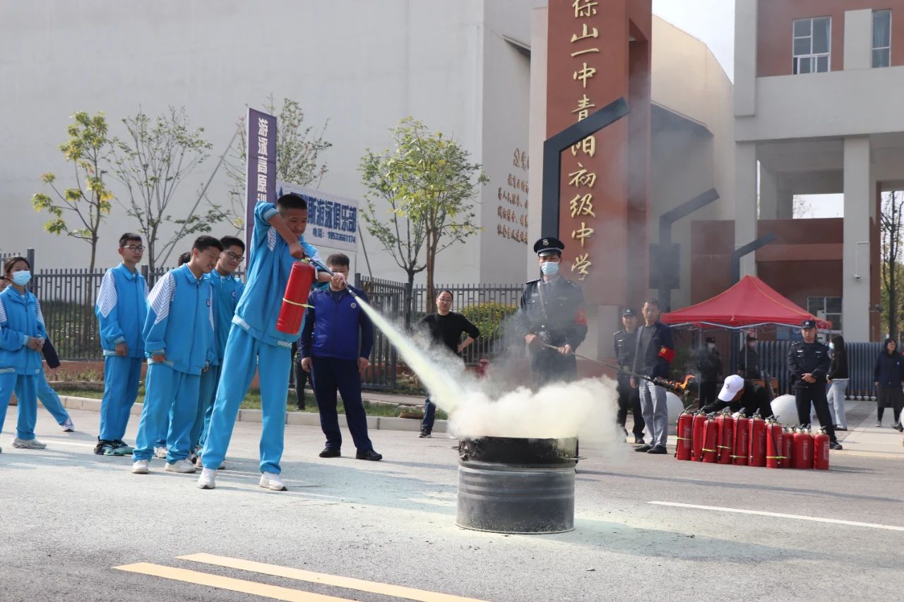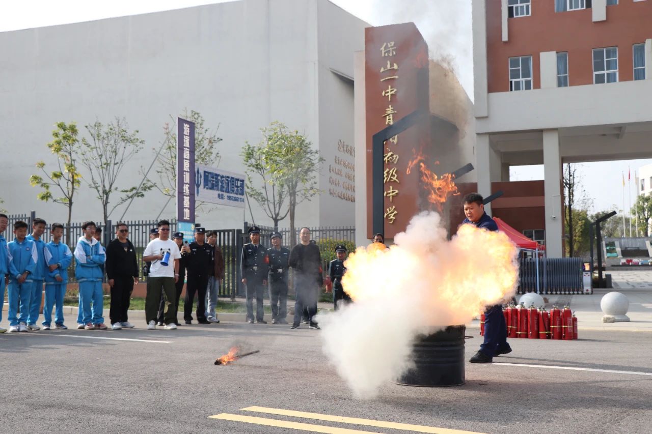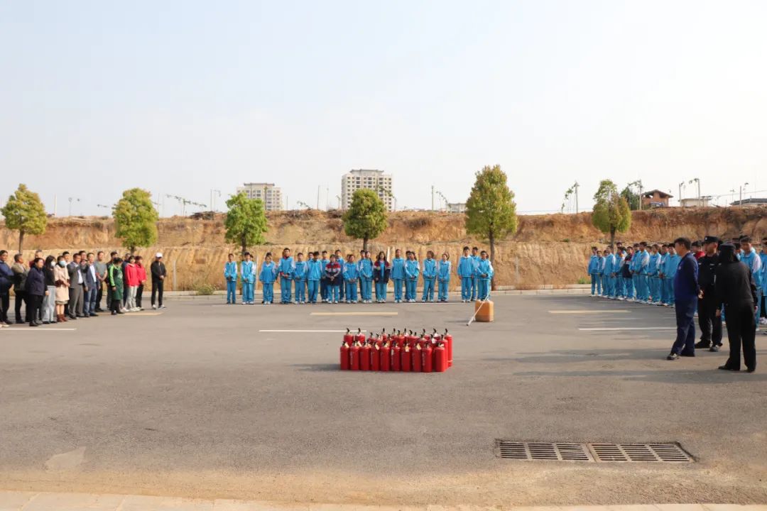 第一阶段消防疏散演练结束后,学校安保人员、食堂和校园超市工作人员、安全员教师以及各班安全委员和班长到学校北大门外面安全区域进行灭火器、消防栓的正确使用演练活动。
