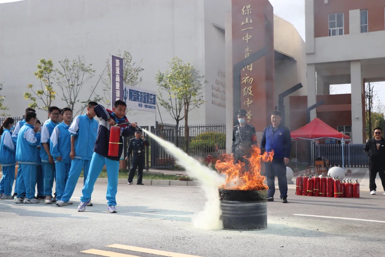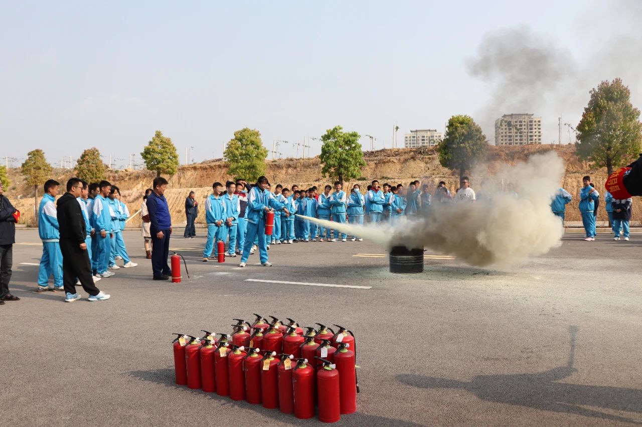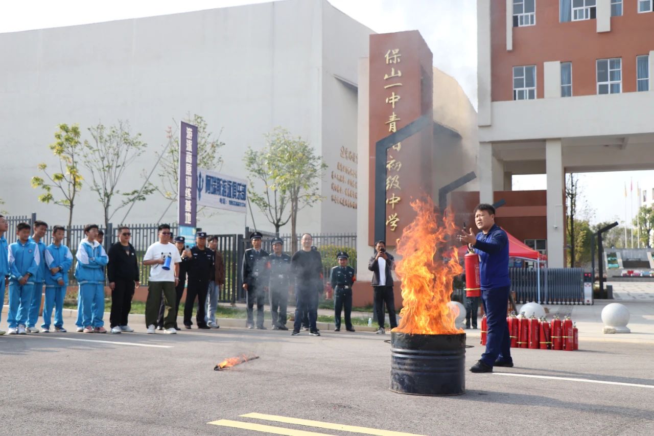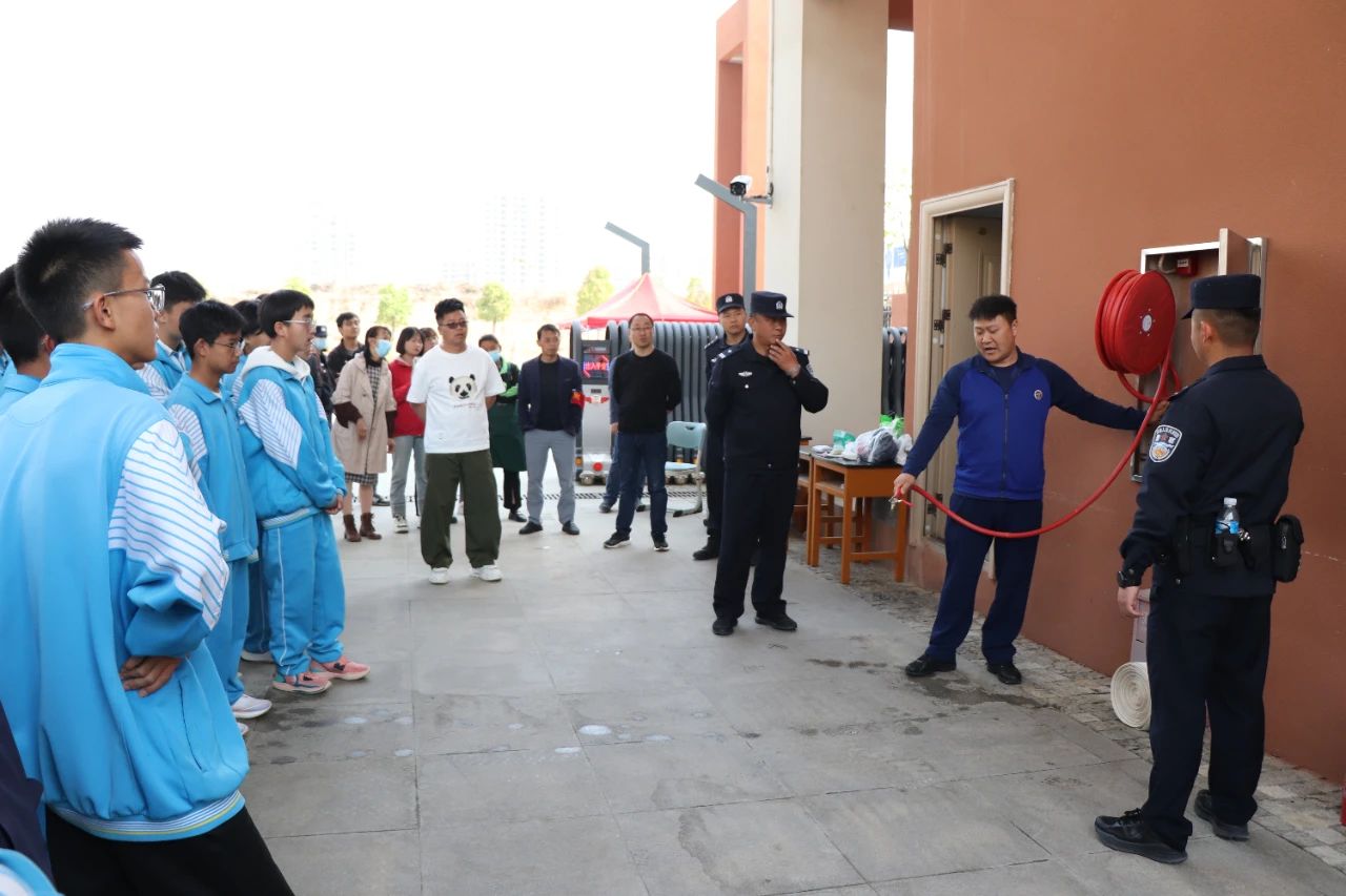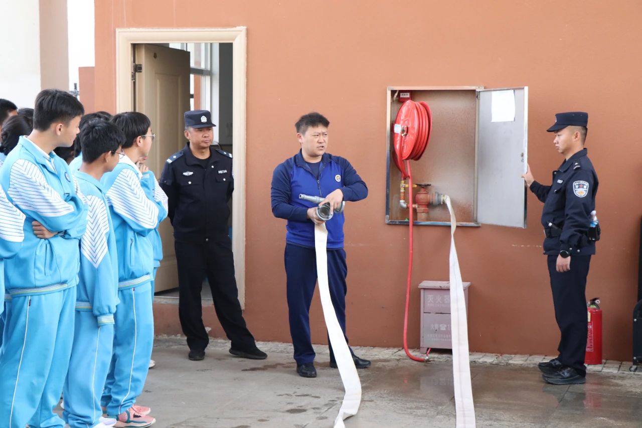 第一阶段消防疏散演练结束后,学校安保人员、食堂和校园超市工作人员、安全员教师以及各班安全委员和班长到学校北大门外面安全区域进行灭火器、消防栓的正确使用演练活动。