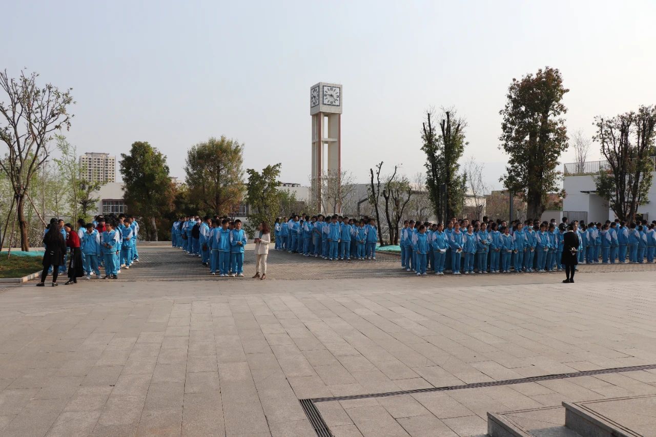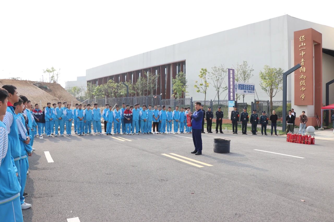 2024年4月3日,保山一中青阳校区全体师生2000余人,拉开了消防、反恐防暴演练活动的序幕。上午9:10,学校广播里传来消防预警鸣笛声,消防应急疏散演练活动正式启动。各班学生有序地按2人一排,从指定路线,快速有序地向临时避险场地安全撤离。