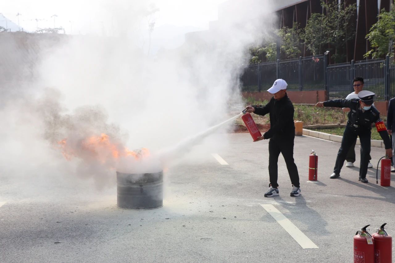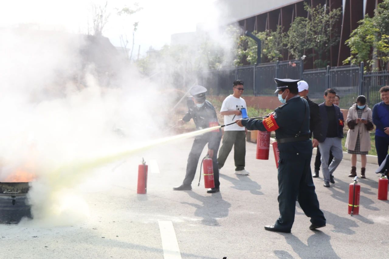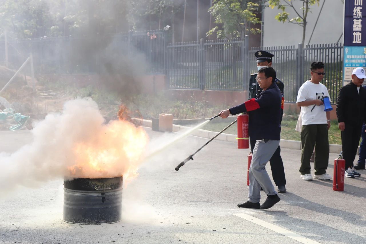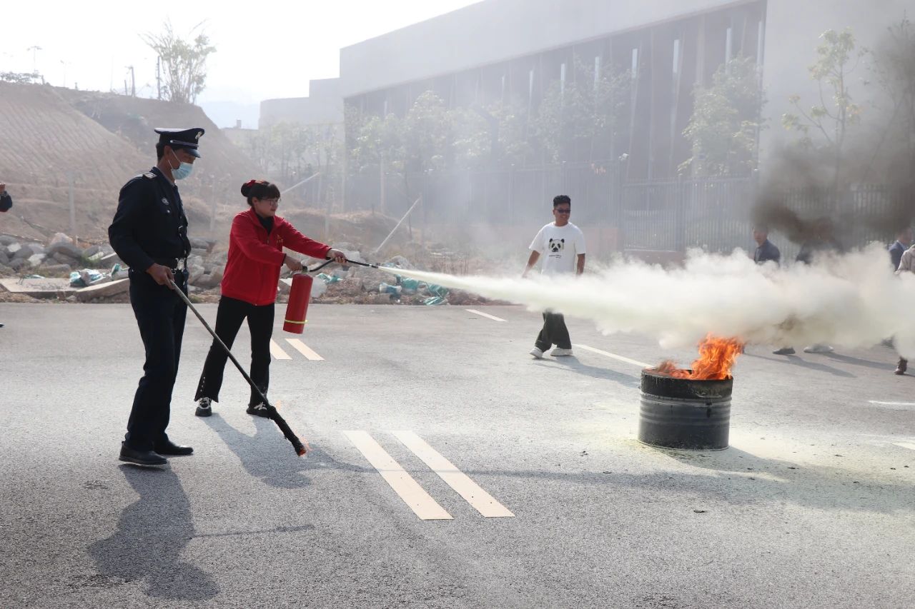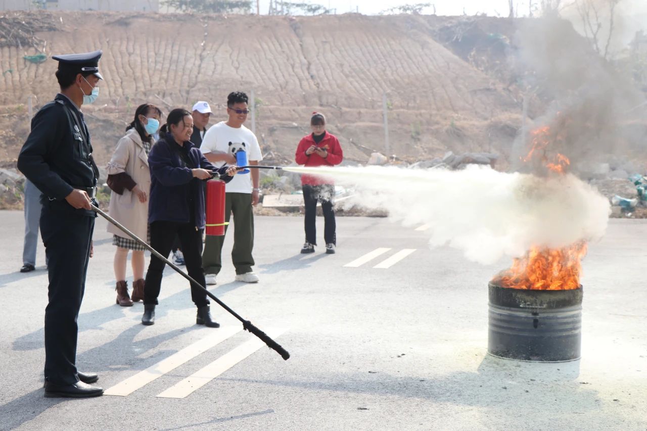 河图街道消防队队长左贵云同志,向现场参与人员讲解消防器材和设备使用的方法。正确使用灭火器的注意事项,演示了灭火的过程。