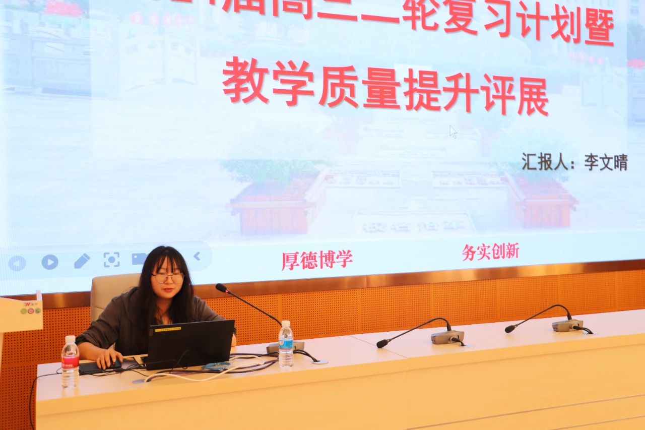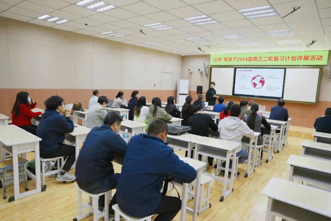 本次评展进一步梳理了高考复习备考思路,强化问题导向、目标导向、结果导向,指引老师们科学安排二轮复习计划,强化复习备考的科学性、精准性、高效性。其中备课组长评展按语数外、理化生、政史地分成三组评展,从考点分析、学情分析、明确目标、二轮计划、备考措施等五个方面进行评展。学科教师按学科分为九组,从学情分析、复习重点、努力目标、备考措施、强化培优等五个方面进行评展。