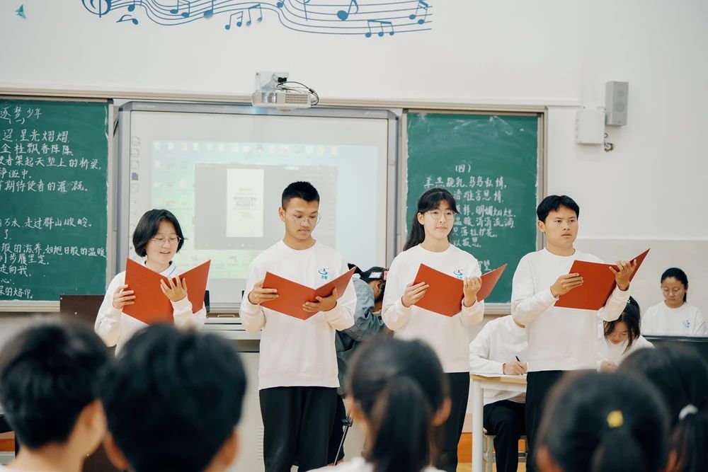 紧接着,伴着杜晓艺同学美妙的琴声,李川芳、李函颖、杨向东、杨鑫禹通过朗诵班级原创诗歌的形式,赞美羊羔跪乳落红护花的恩情。张李冉同学的书法落纸云烟,加上邢洋同学的时装设计,尽显天箭希望学子的奇思妙想和肆意张扬的青春活力。