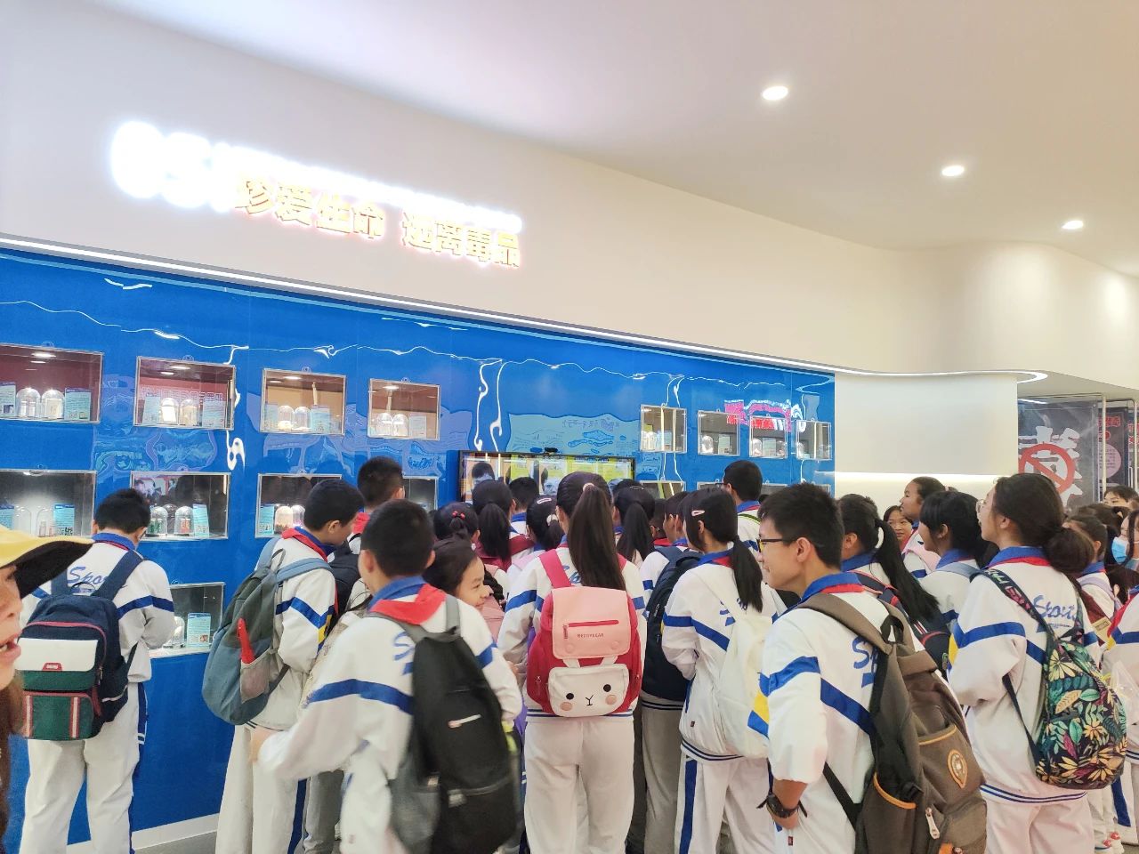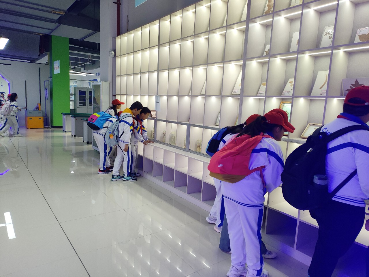 上午,同学们着装整齐,有序进入科技馆广场,各班老师组织同学们在科技馆拍照合影留念,每位同学脸上都洋溢着笑容。同学们在老师的带队下,依次参观了科技馆、人工智能馆和法治馆。
