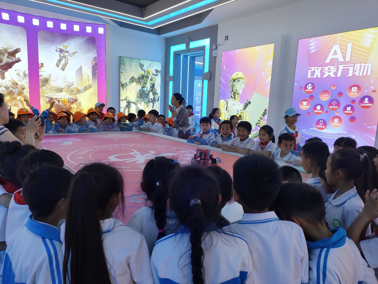 进入人工智能馆,最先映入同学们眼帘的就是全息风扇,同学们围成一圈,发出阵阵惊叹声。一进入机器人对战区,同学们立刻露出了惊喜的表情,争先恐后地举起手,想要亲自动手操作对战机器人。同学们围在跳舞机器人区,忍不住和机器人一起手舞足蹈起来。