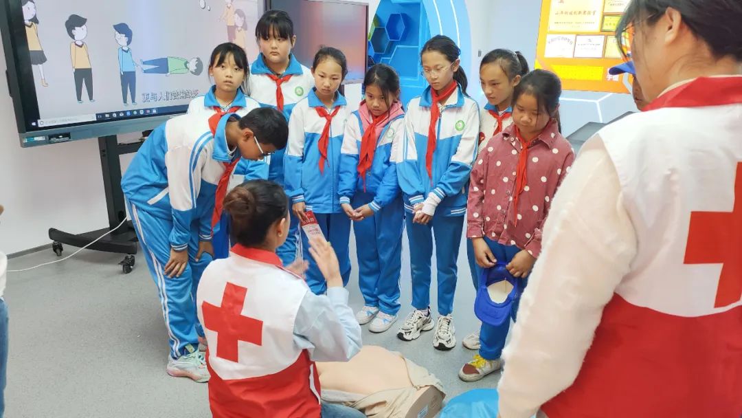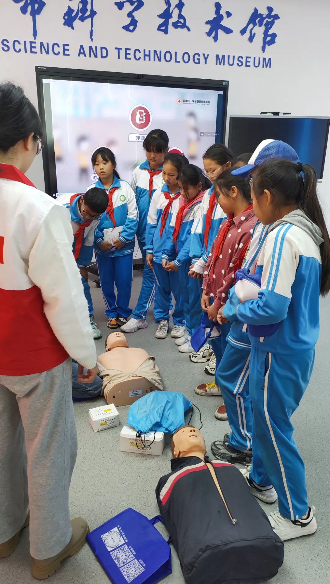 智慧教室里,市红十字会临时增设了一个展区,开展了一场关于心肺复苏急救知识的科普活动。