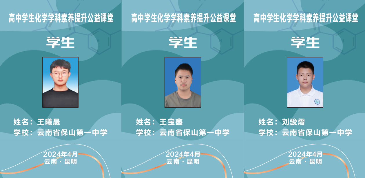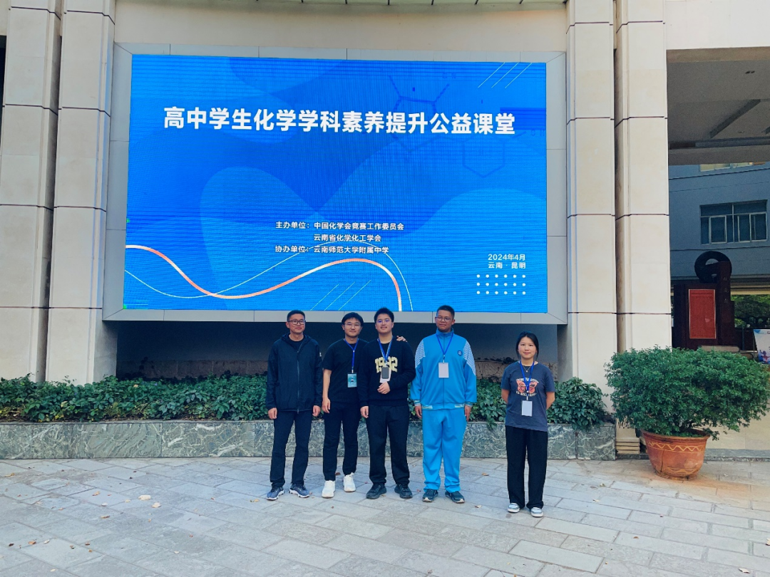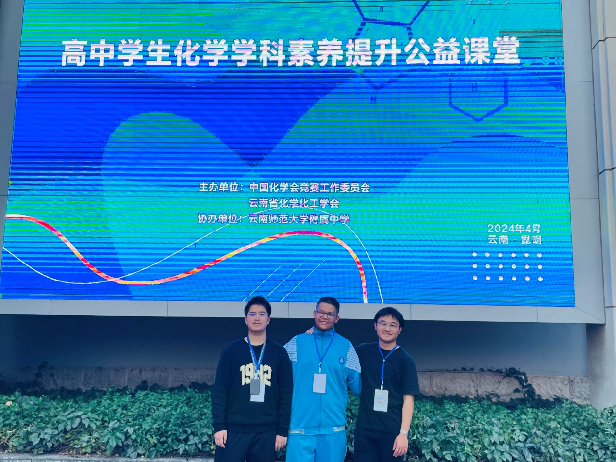 2024年4月12日至15日,由中国化学会竞赛工作委员会主办,云南省化学化工学会承办,云南师大附中协办的高中学生化学学科素养提升公益课堂第三期在昆明市举办。我校两名教师(李建军、张锦璇)和三名学生(高一年级刘骏熠、高二年级王宝鑫、王曦晨)参会学习。本次活动邀请到浙江大学吕萍教授,北京大学裴坚教授为同学们讲解有机化学,北京大学王颖霞教授和郑州大学的李恺教授讲解无机化学。