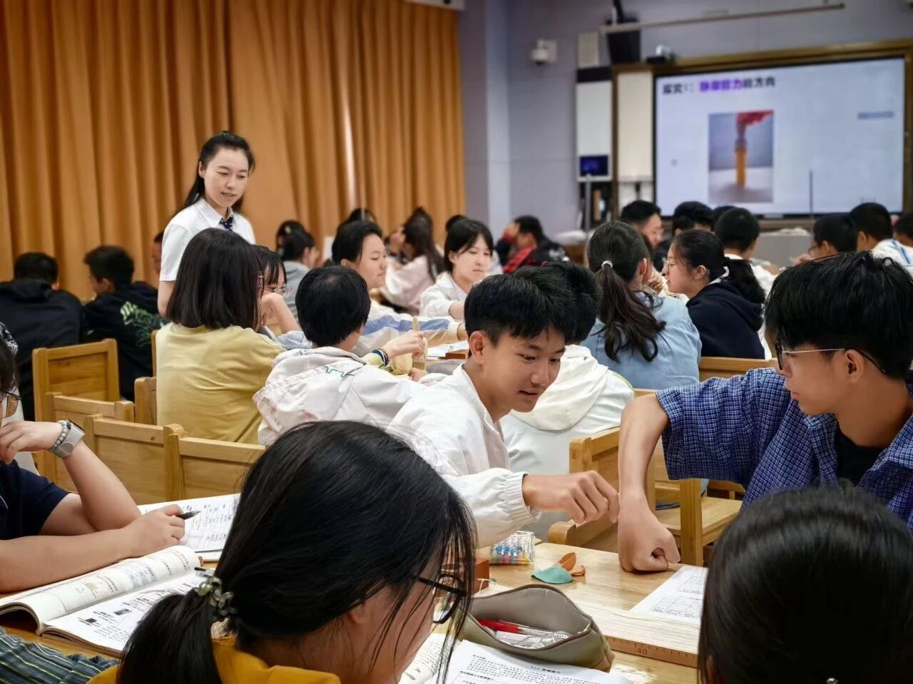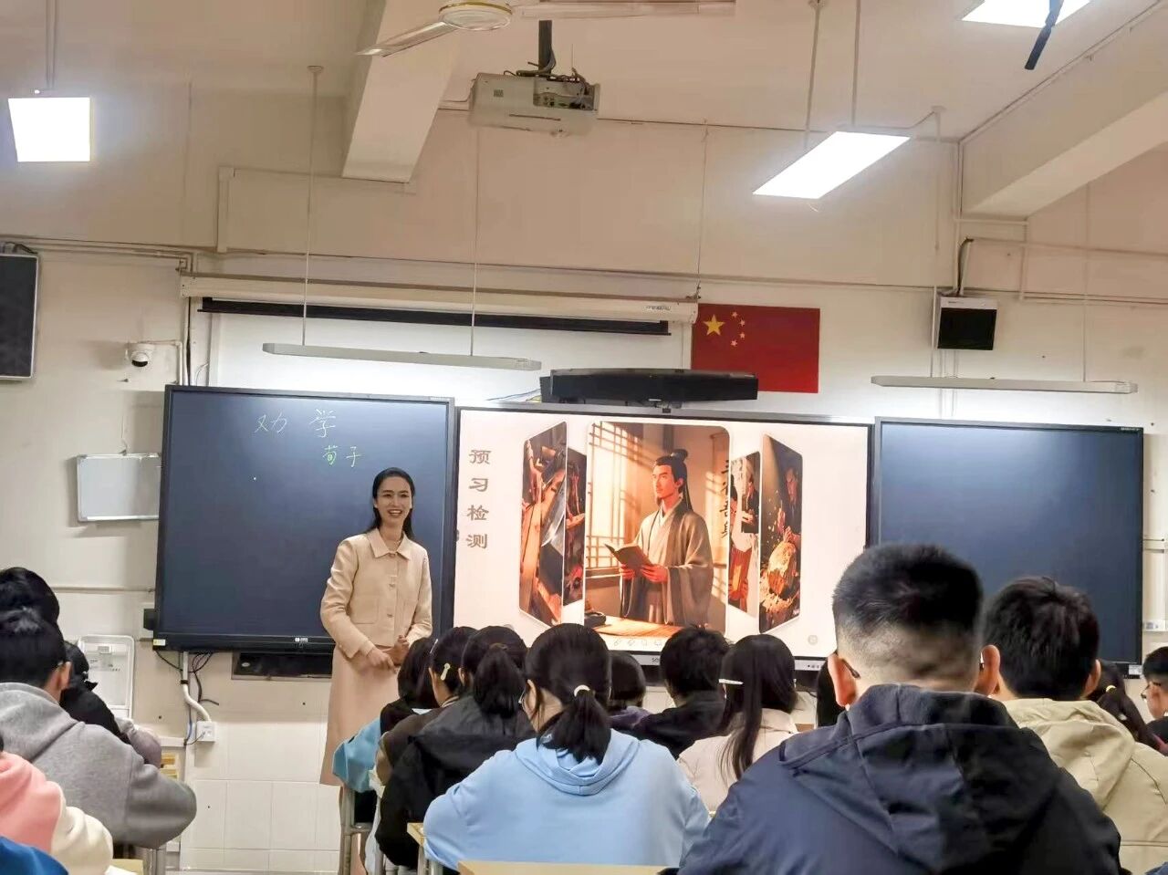 三位参赛教师各有专长:王颖老师的物理课堂注重“实验探究+逻辑推导”,善于用生活化场景激发学生兴趣,将复杂物理规律拆解为阶梯式问题链,引导学生自主探索;杨化老师深耕语文教学,以“劝学思辨+AI赋能”打造课堂,借AI工具检索案例、生成图片,聚焦“AI时代主动学习”思辨,让科技与人文相融。