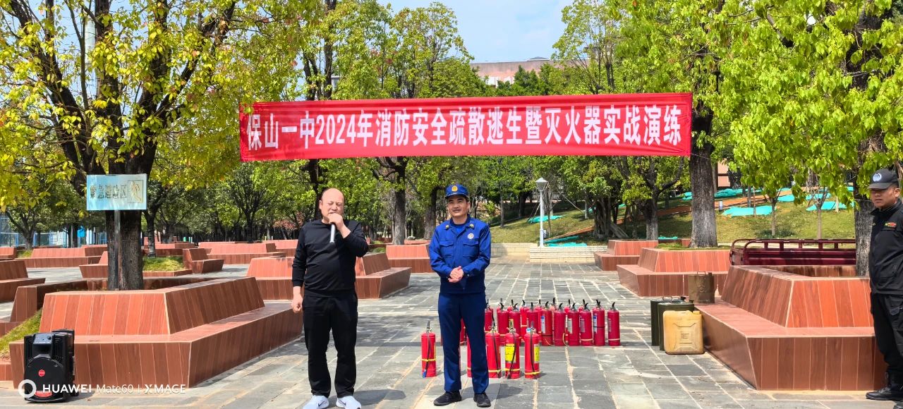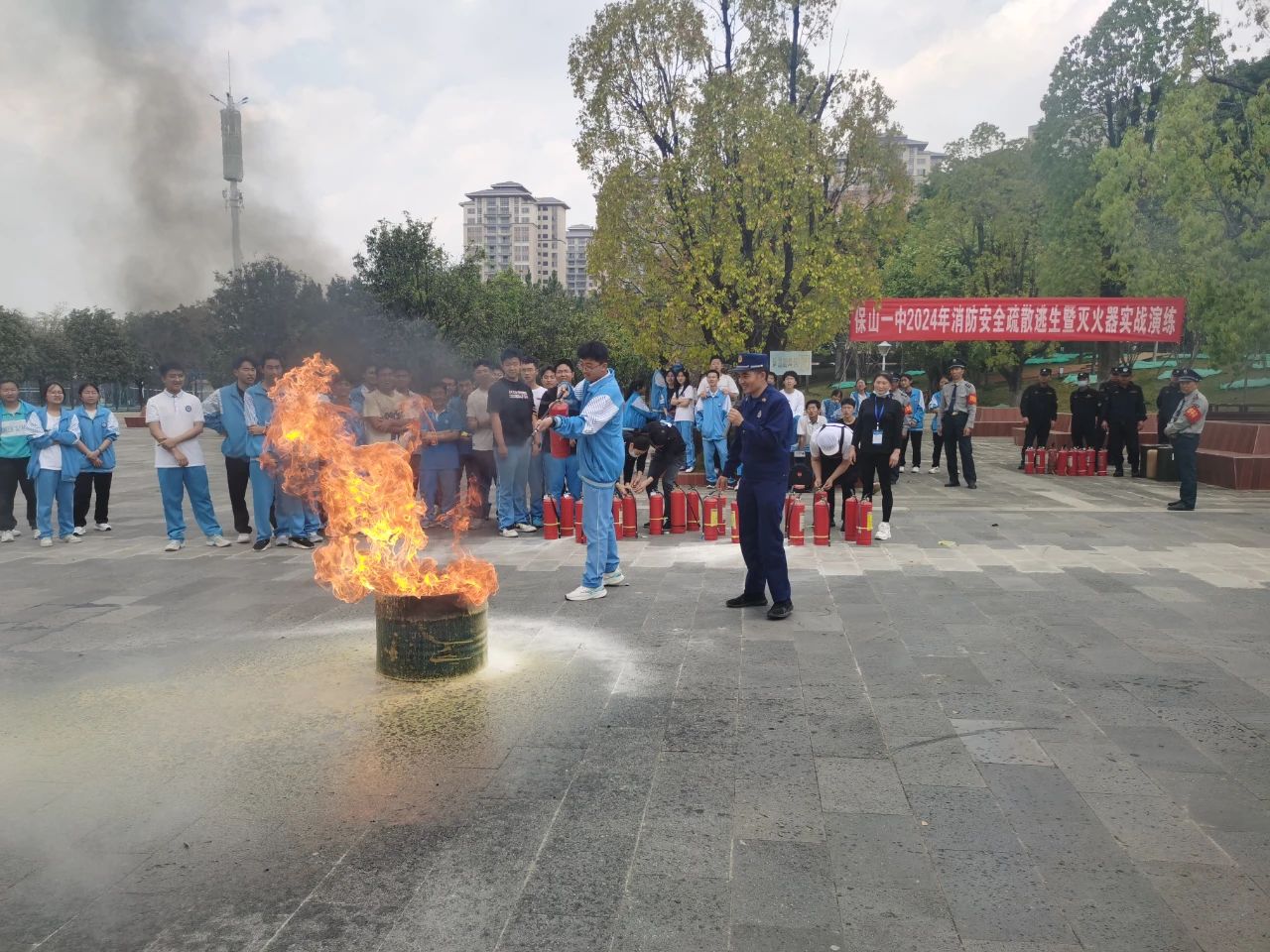 演练结束后,学校还邀请保山市消防救援支队消防员为部分师生员工进行了消防安全培训,消防救援人员给师生讲解了火灾预防、火场逃生、正确使用灭火器、火灾自救互救等方面的消防安全知识。在消防救援人员的指导下,师生员工代表还现场进行了使用灭火器灭火演练。