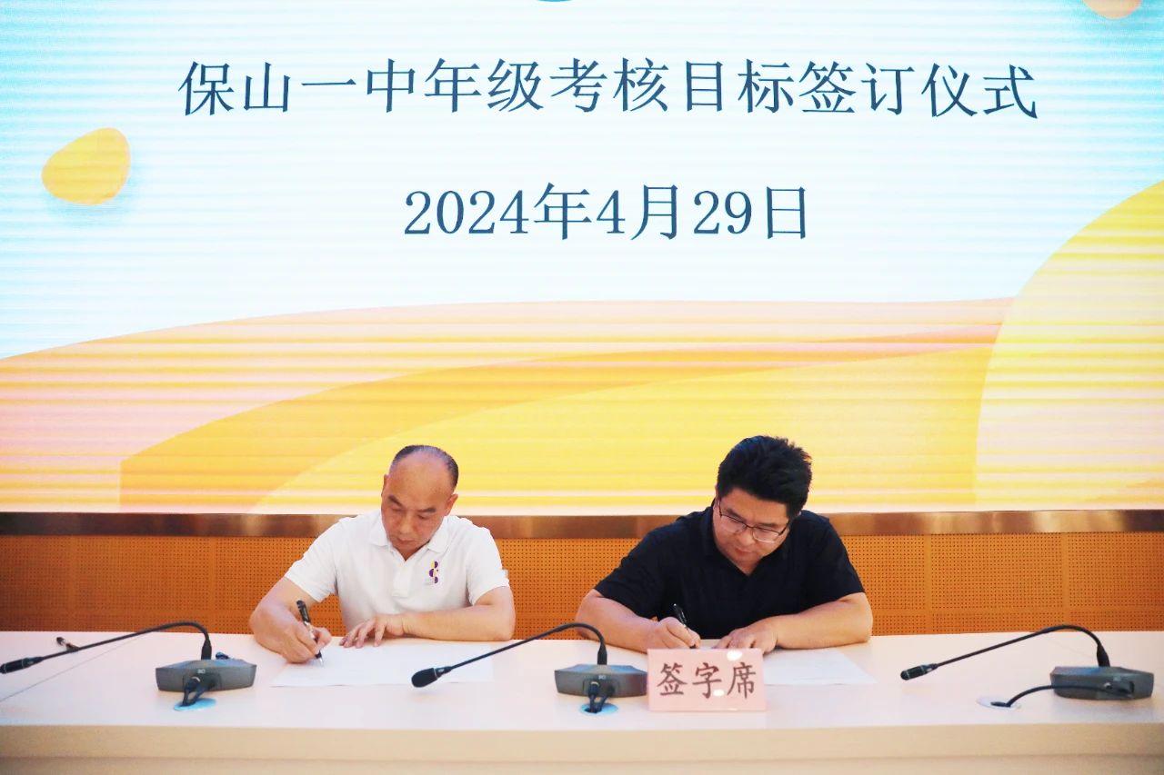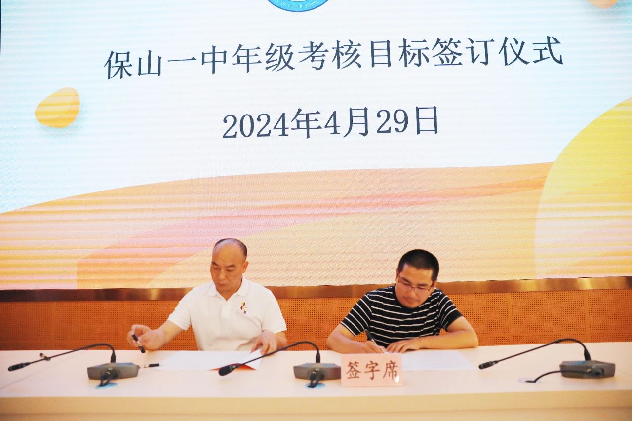 会议第一项议程由郭云波副校长主持并解读年级目标责任书的具体考核要求。初一、初二、高一、高二年级主任与付飞校长签订了《年级目标责任书》。