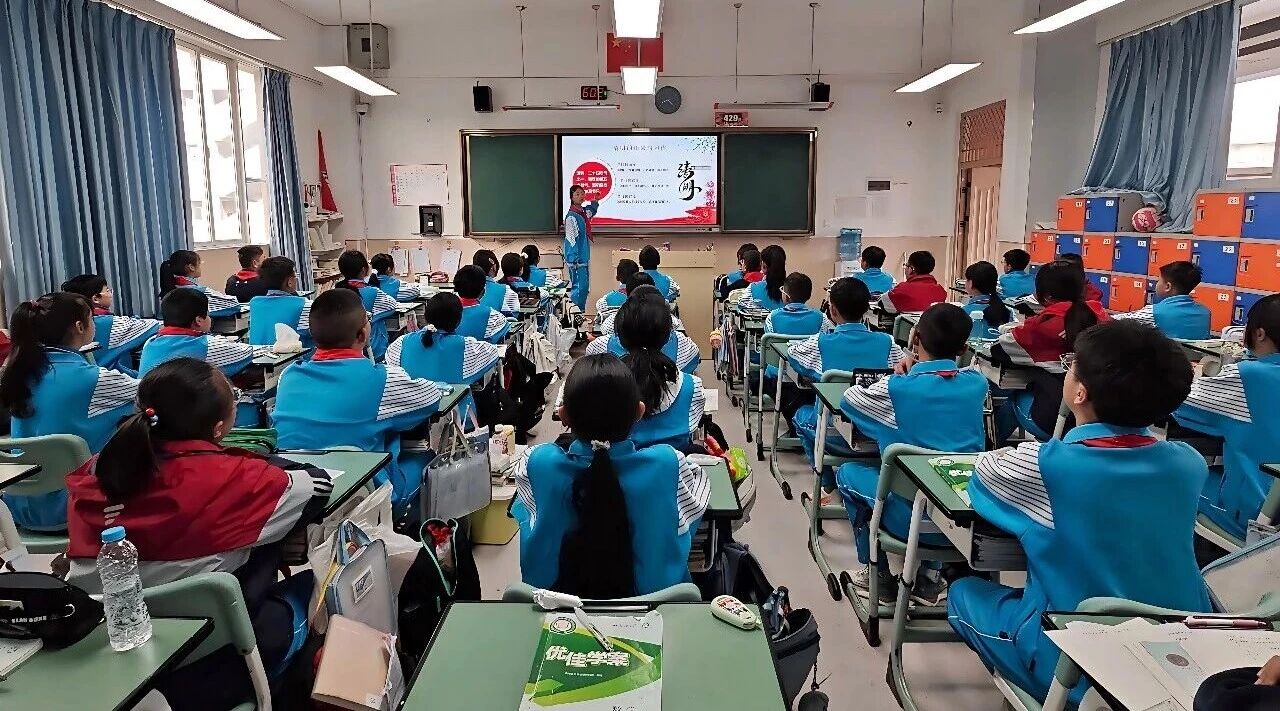 “我是中国少年先锋队队员,我在队旗下宣誓……”重温入队誓词的声音铿锵有力,庄严呼号响彻教室。辅导员老师深情总结,勉励队员们铭记历史、勤奋学习、报效祖国。