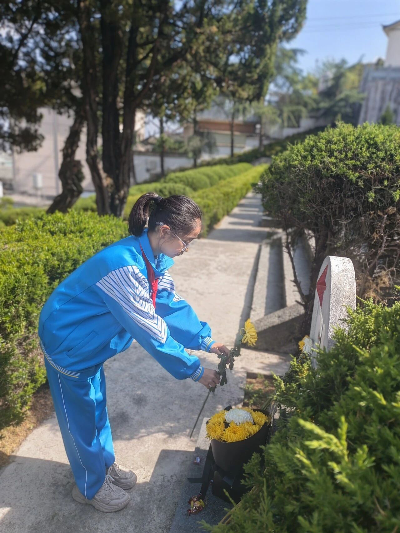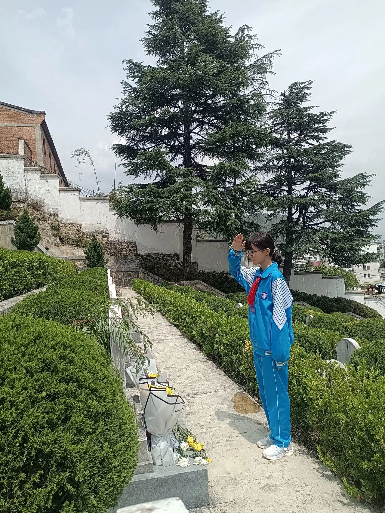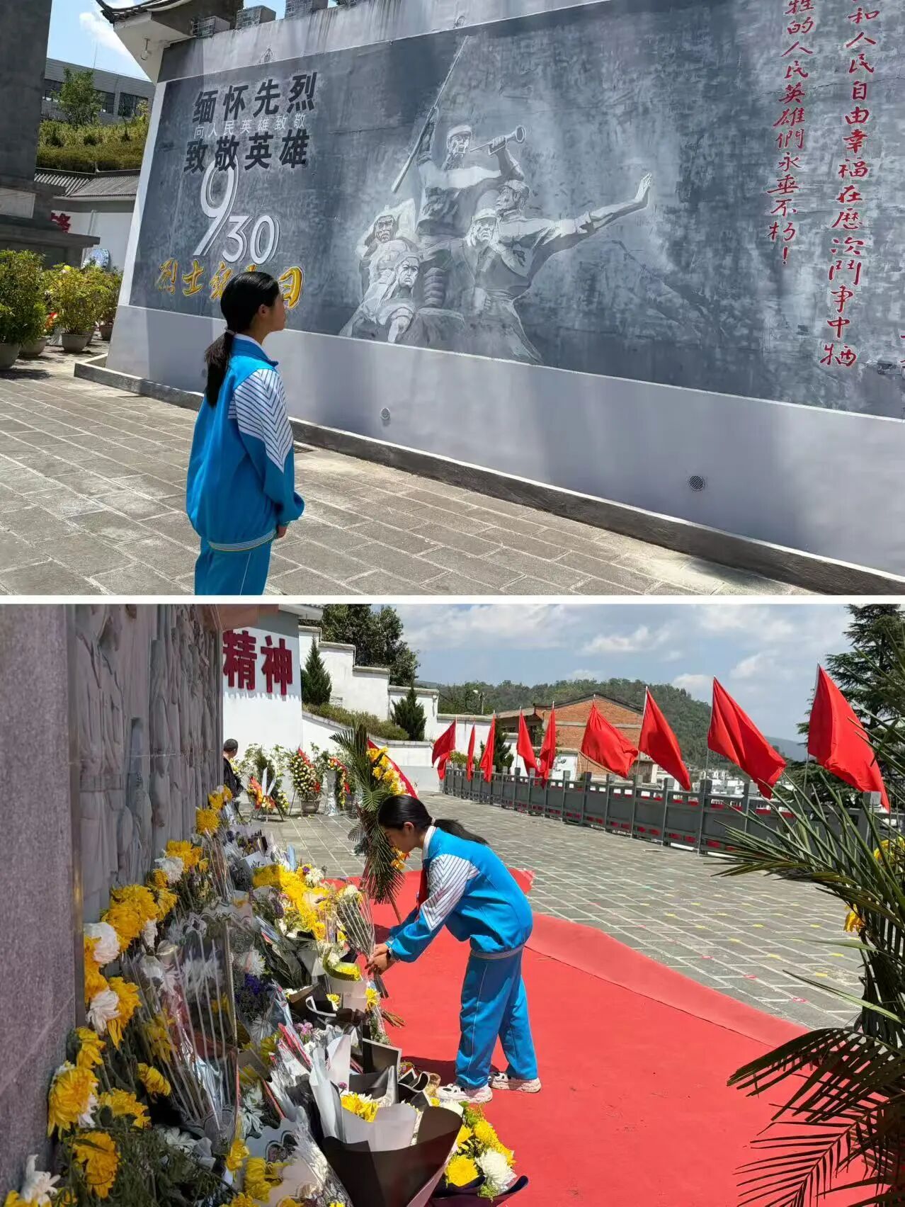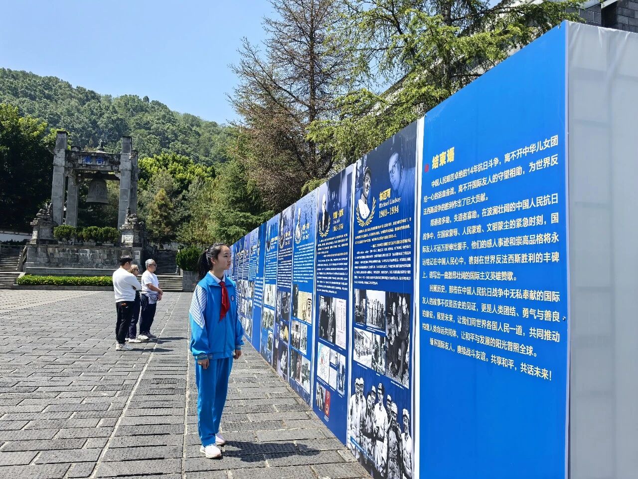 肃立默哀,一分钟的静默承载着无尽的敬意;敬献菊花或亲手制作的小白花,绿色文明祭扫传递着真挚的缅怀。队员们认真聆听讲解,学习滇西抗战的悲壮历史,在纪念碑前三鞠躬、行队礼,瞻仰纪念设施时安静肃穆,展现出“天南学府”学子良好的精神风貌。