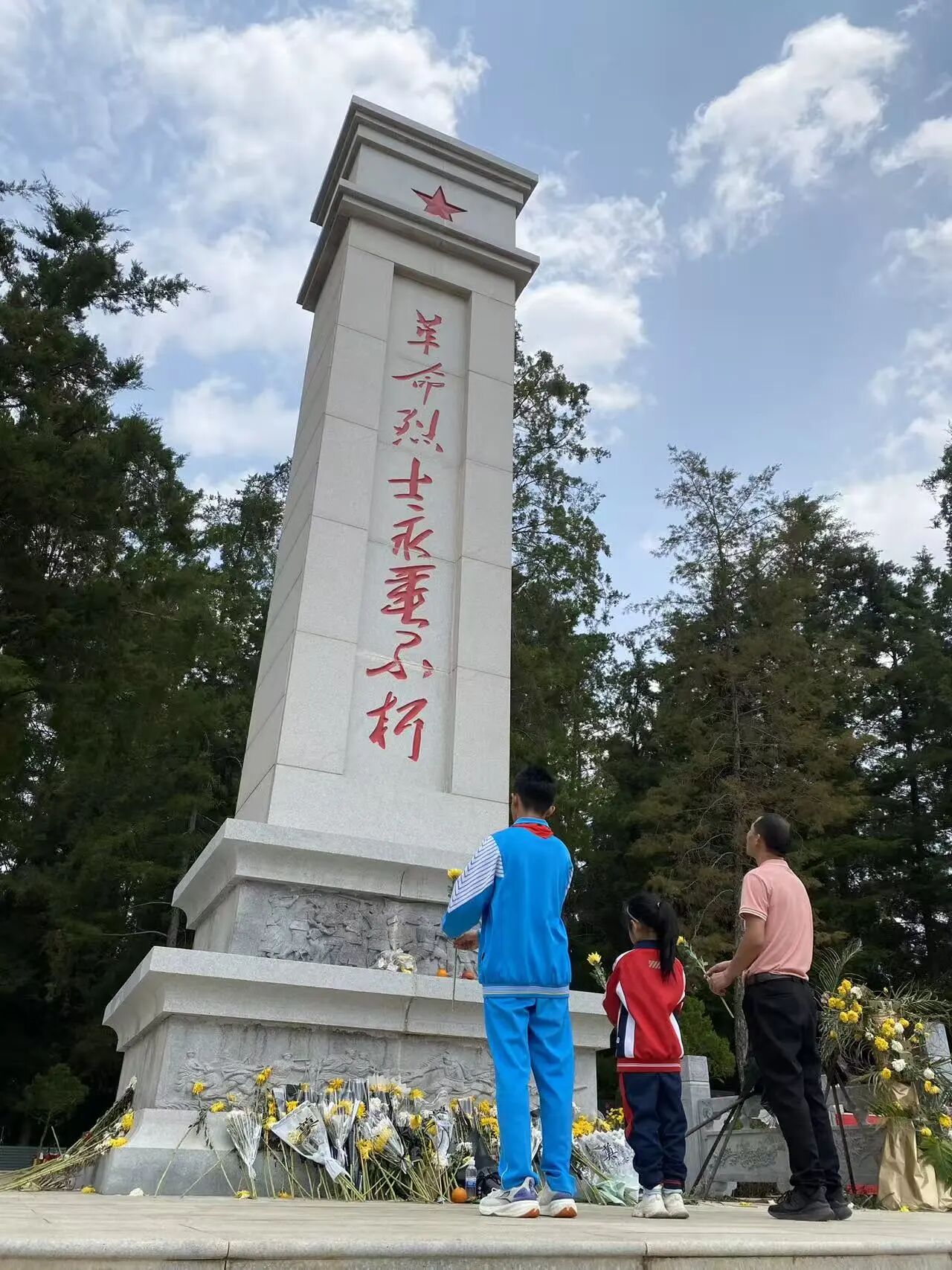 清明节期间,少先队员们在家长带领下,就近就便前往保山烈士陵园、易罗池滇西抗日阵亡将士纪念碑、梁金山故居、金鸡“四一五”武装起义纪念广场等红色遗址,开展“红领巾向英烈致敬”实践活动。