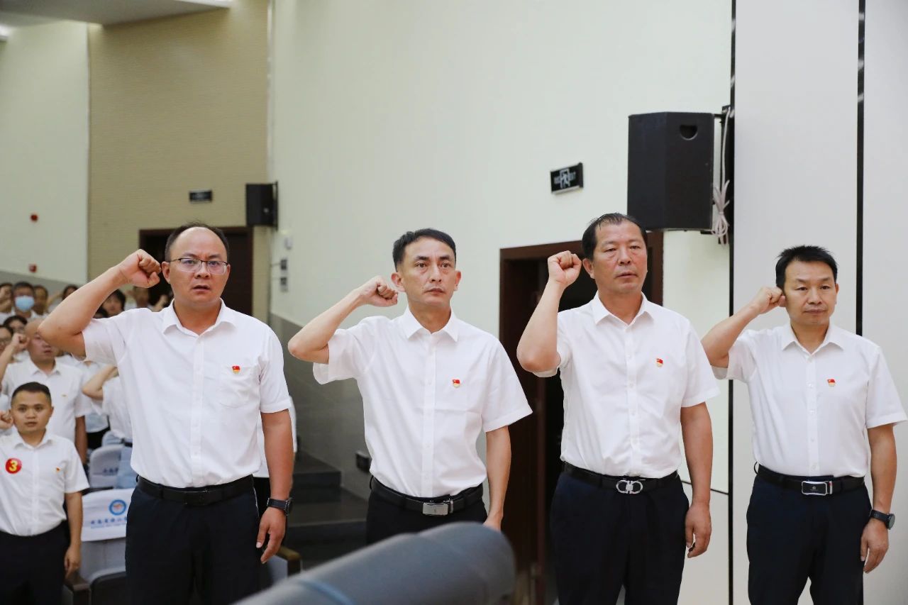 会上,开展了重温入党誓词活动,全体党员用铿锵有力的誓言表达了对党的忠诚、对教师事业的执著和对人民的热爱。由付飞校长领誓。