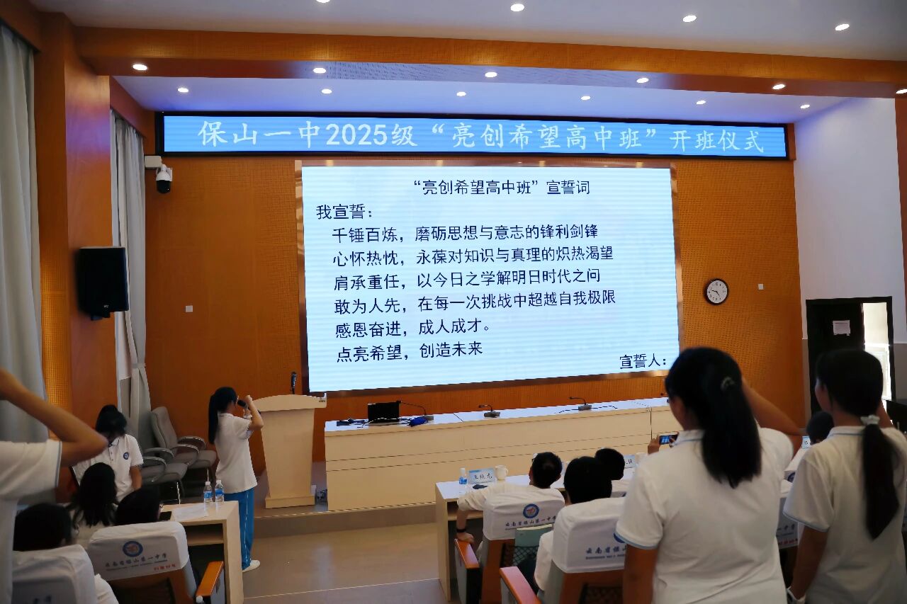 点“亮”希望,“创”造未来。2025年9月29日,云南省希望工程保山一中“亮创希望高中班”开班仪式在保山一中图书馆三号阶梯教室举行。
