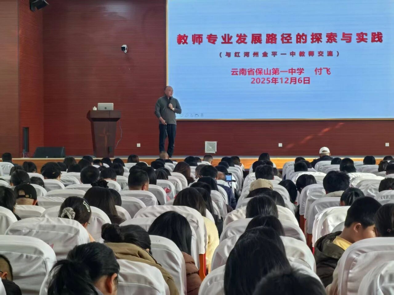 12月6日上午,付飞校长为金平一中全体教师带来题为《教师专业化成长路径的探索与实践》的专题讲座。讲座从“树立一种信念、明确两项任务、具备三种情感、提升四项素质、培育五种精神、精细六个环节、掌握七种要领、演好八种角色、强化九个意识、注重十个细节”十个维度,结合教育教学实践案例,深入浅出地分享了教师专业成长的方法与路径。讲座内容接地气、实用性强,得到现场教师的一致好评,大家纷纷表示收获满满,为今后的教学工作指明了方向。