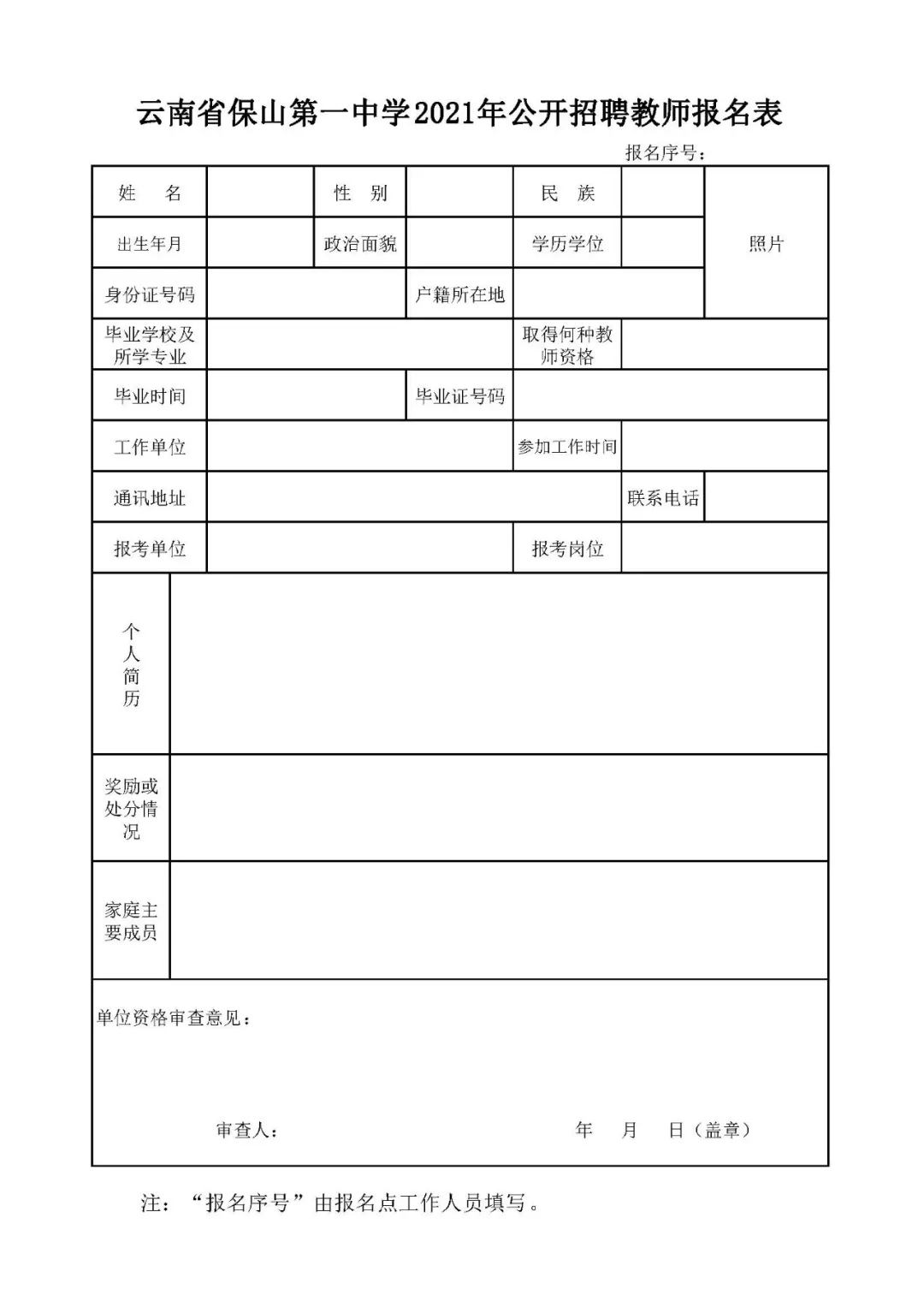 附件:保山第一中学2021年公开招聘教师报名表