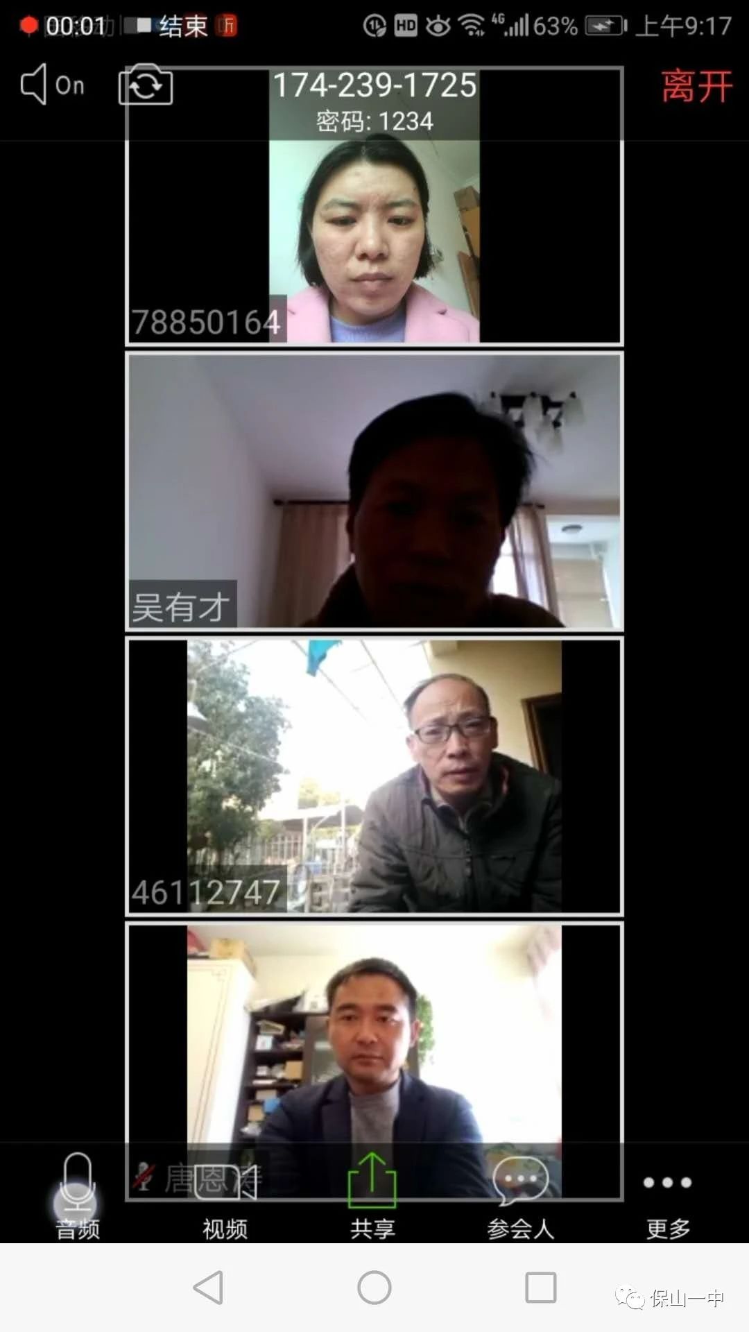 根据《保山一中新型冠状病毒感染的肺炎疫情防控应急方案》要求,我校教师自2月3日起进入居家工作状态,由教科处牵头组建教研管理群,建立教学指导组对接教研组长,教研组长对接备课组长,备课组长对接科任教师,科任教师面向全体学生的分级信息联动机制。以微信工作群、视频会议系统为支撑,建立了特殊时期的信息沟通渠道,出台了《保山一中开学预备期教师教学工作要求》。