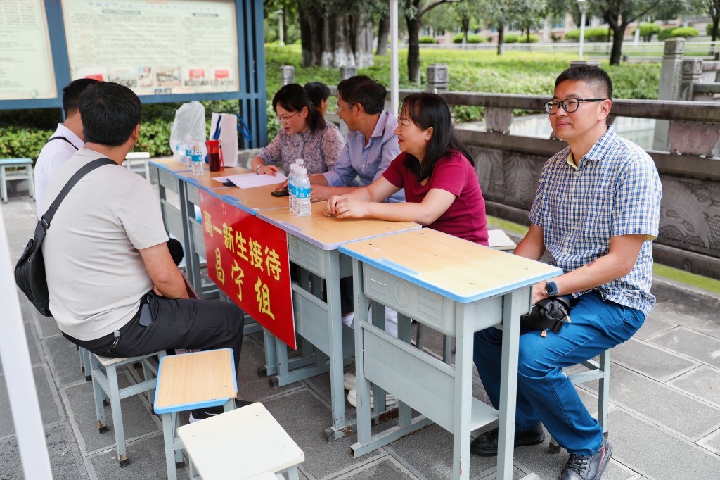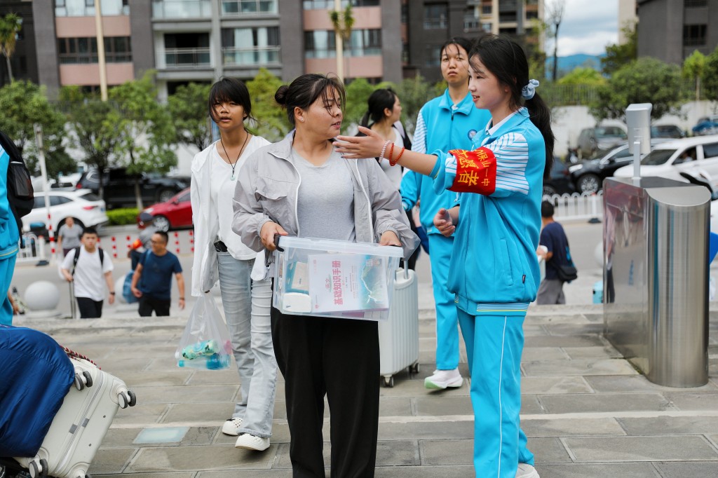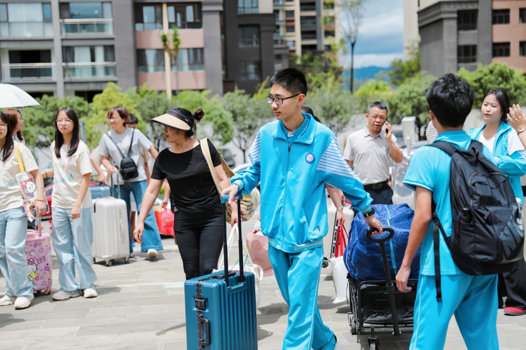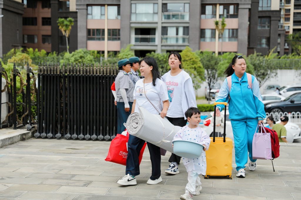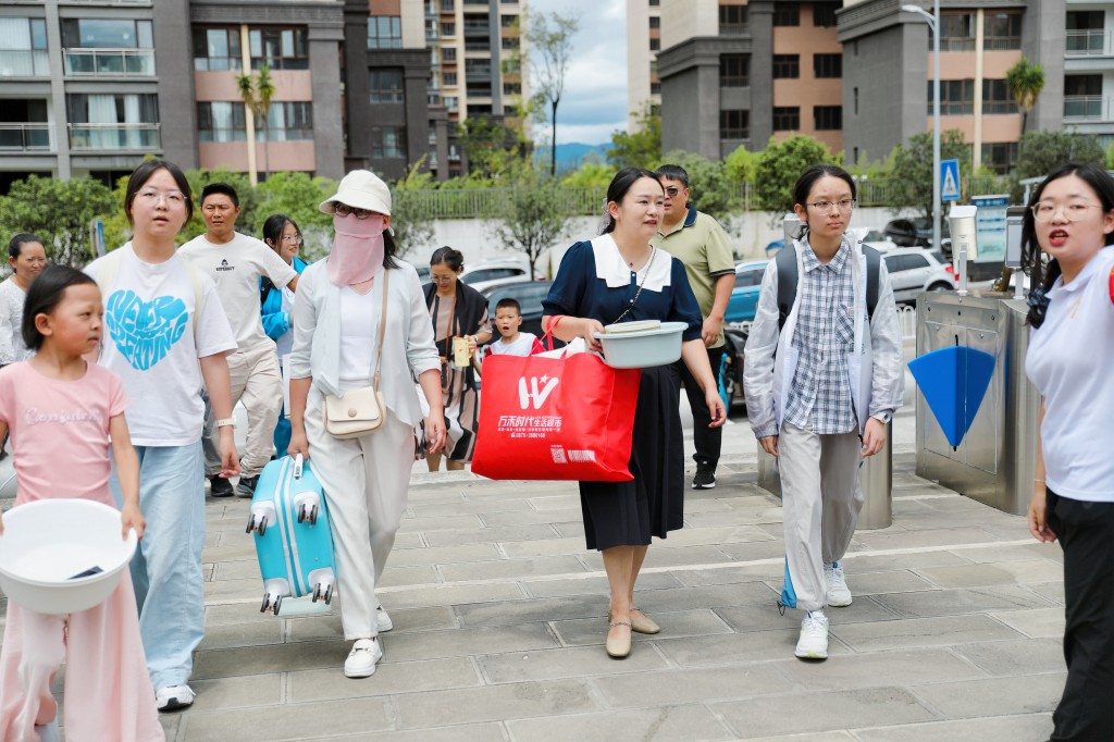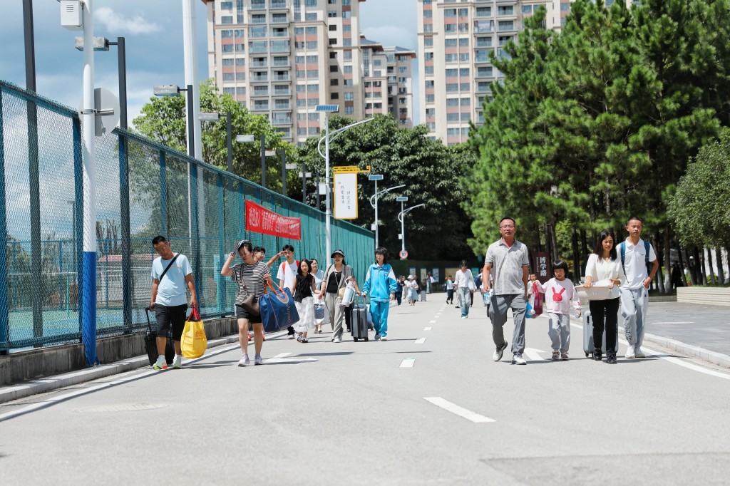 从校门口到入住宿舍都有专人引导