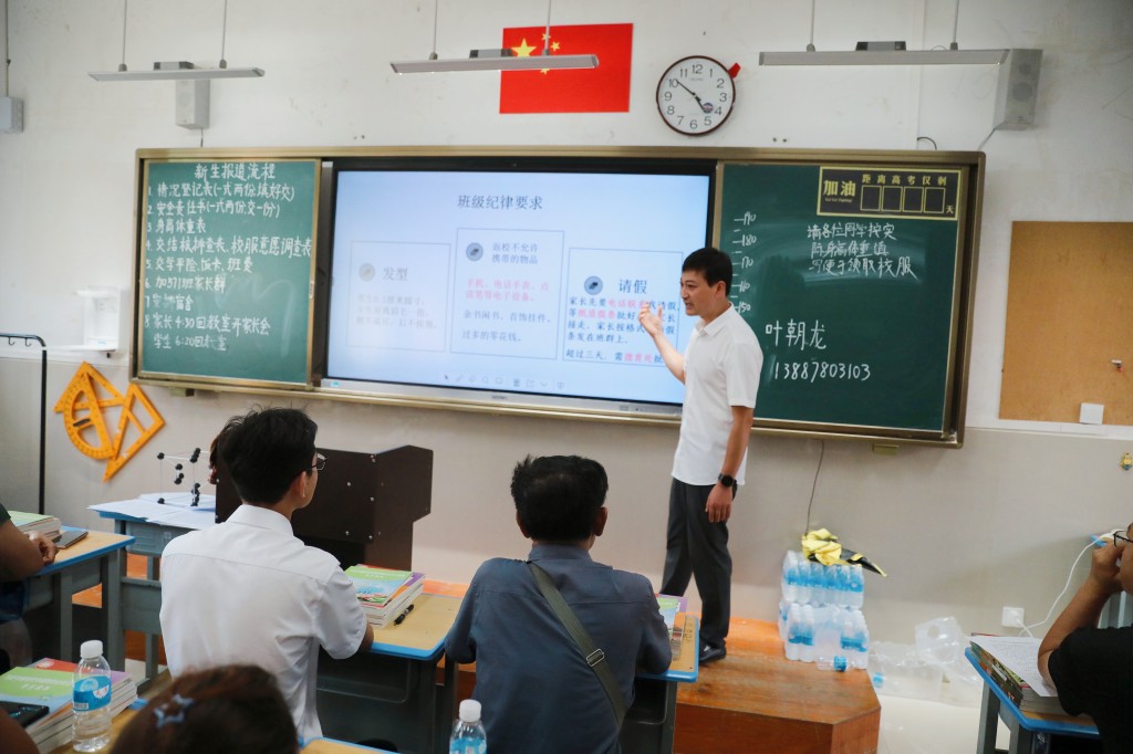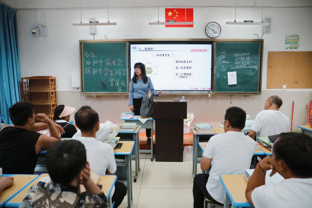 班级里正在召开着新生家长会