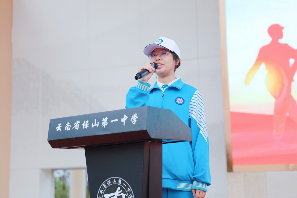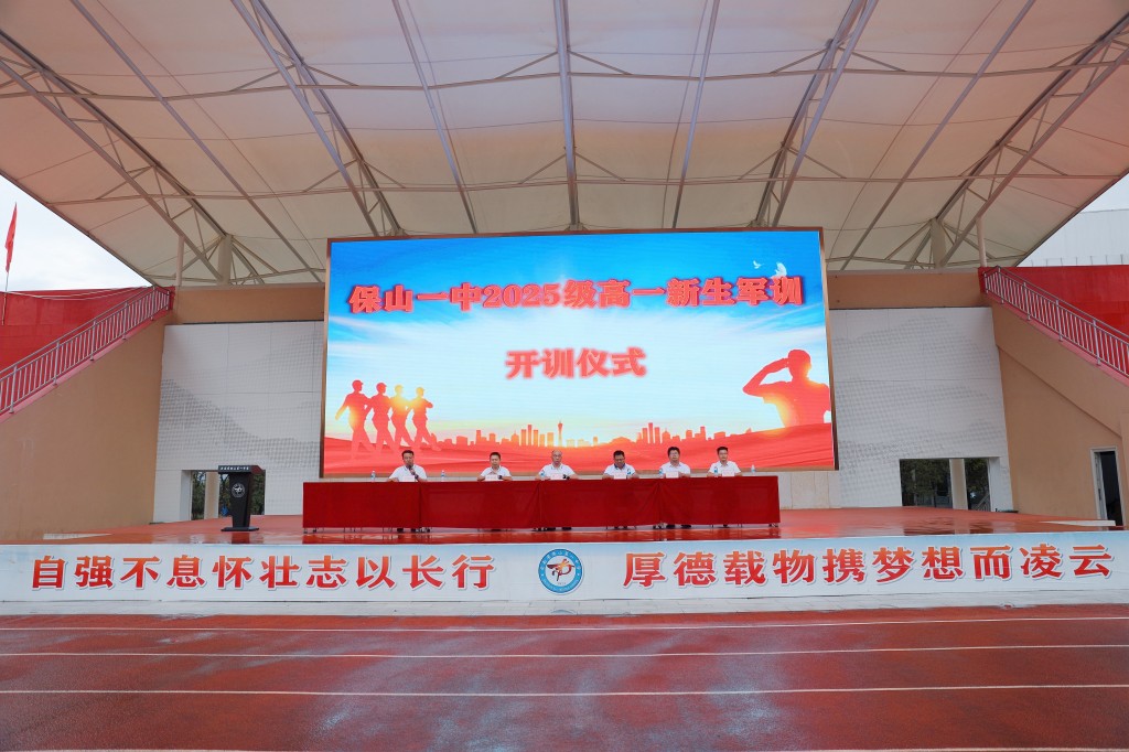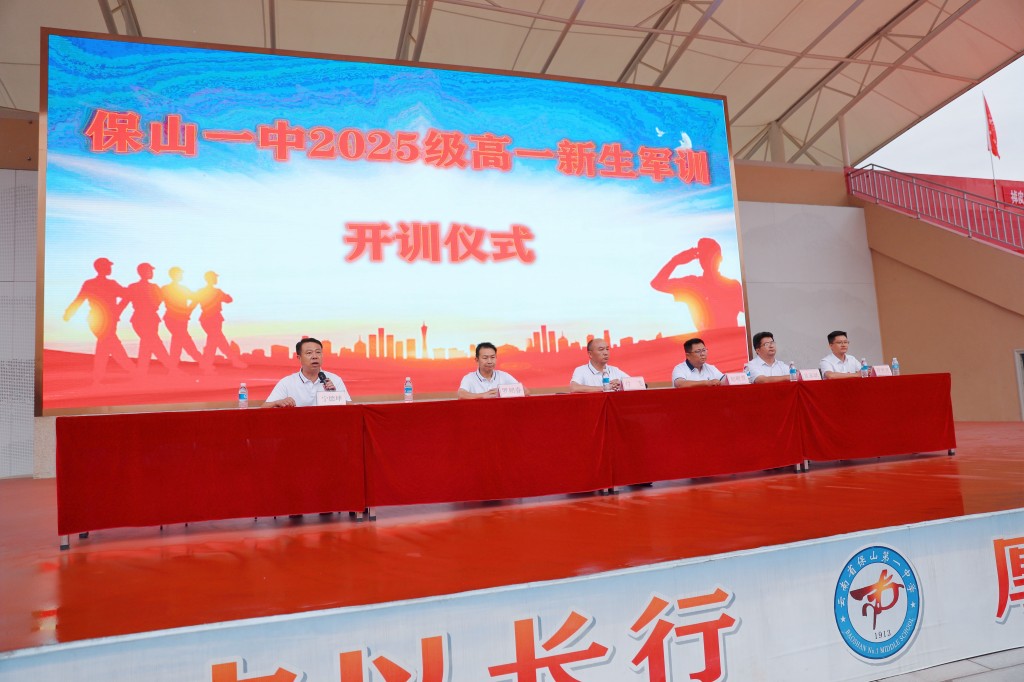 学校纪委赵峻萱书记宣布保山一中2025级高一新生军训正式开始。