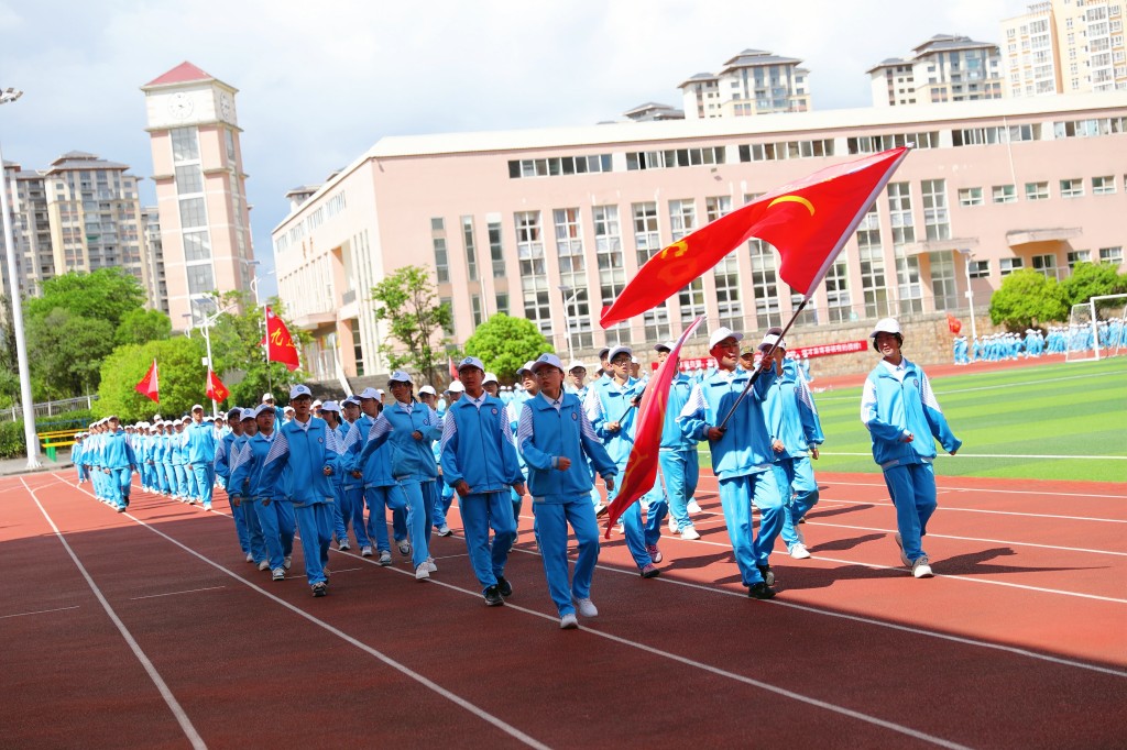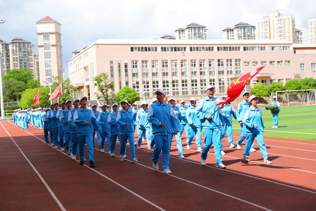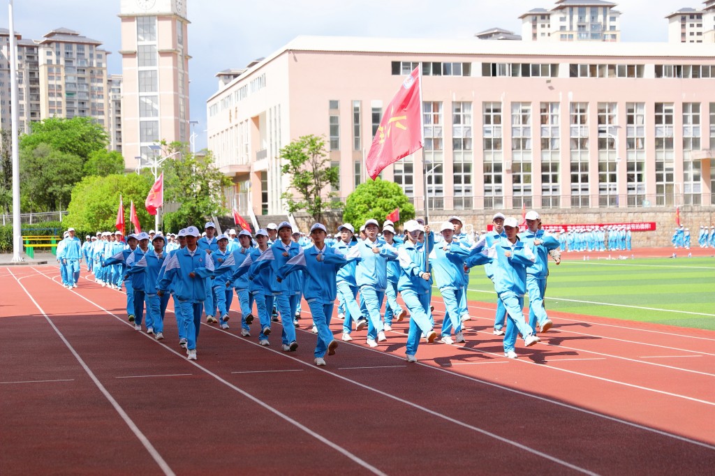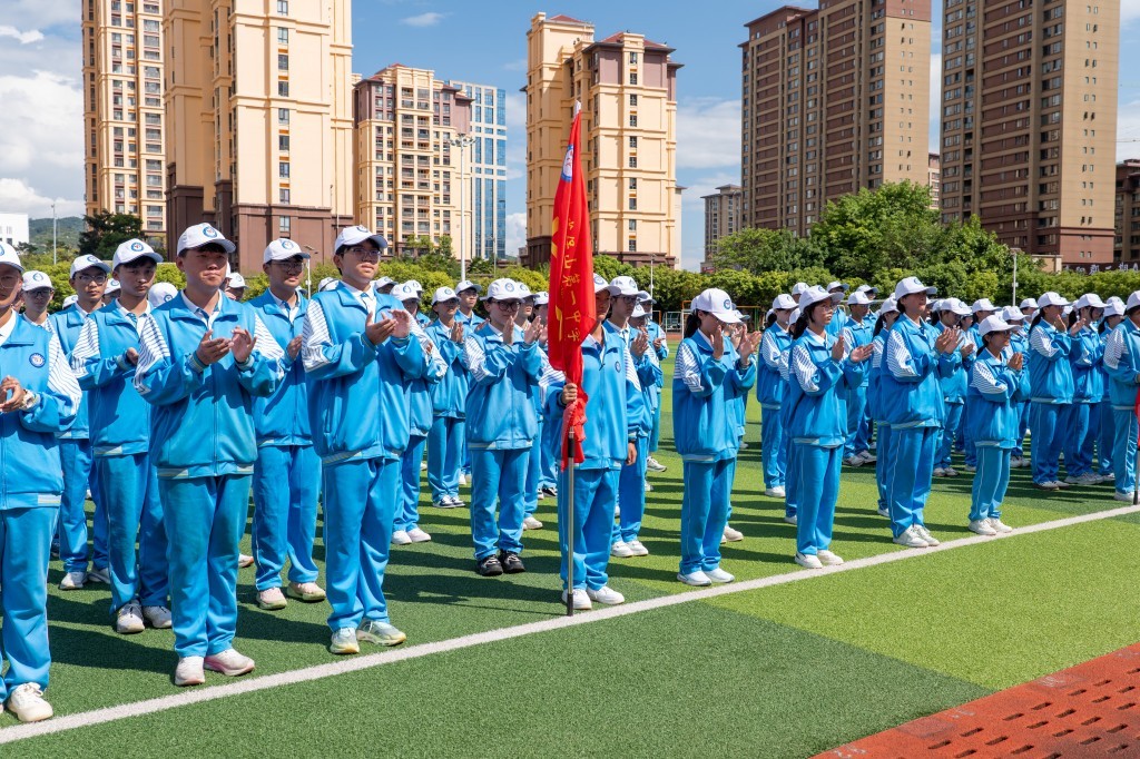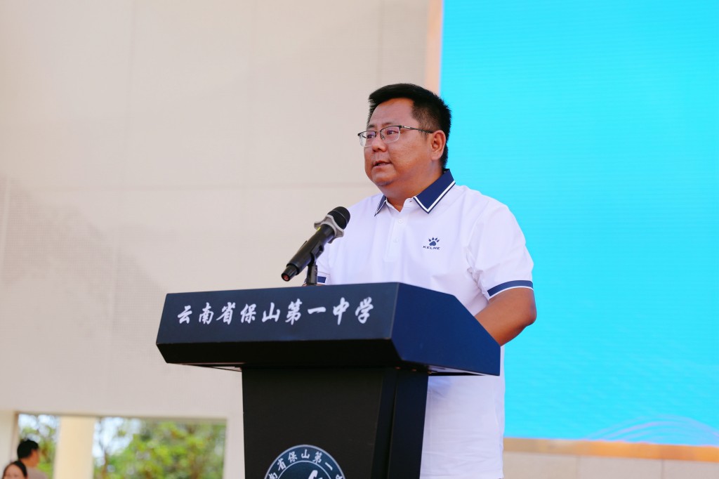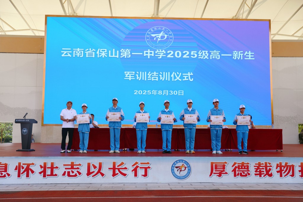 15时30分,保山一中2025级新生结训典礼开始,付飞校长等校领导在主席台就座,典礼由德育安全处主任宁德坤主持。