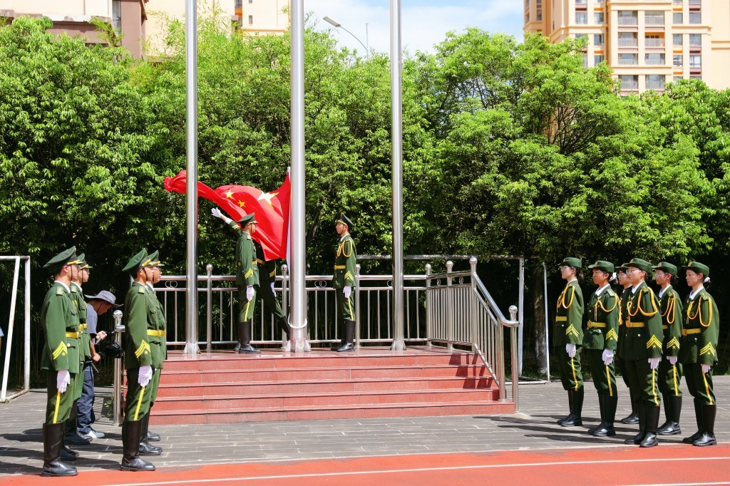 在庄严的国歌声中,会场上的全体人员肃然起立,齐声奏唱国歌,目光追随着冉冉升起的国旗。随着国歌落下最后一个音符,这场新生结训典礼也正式拉开了帷幕!