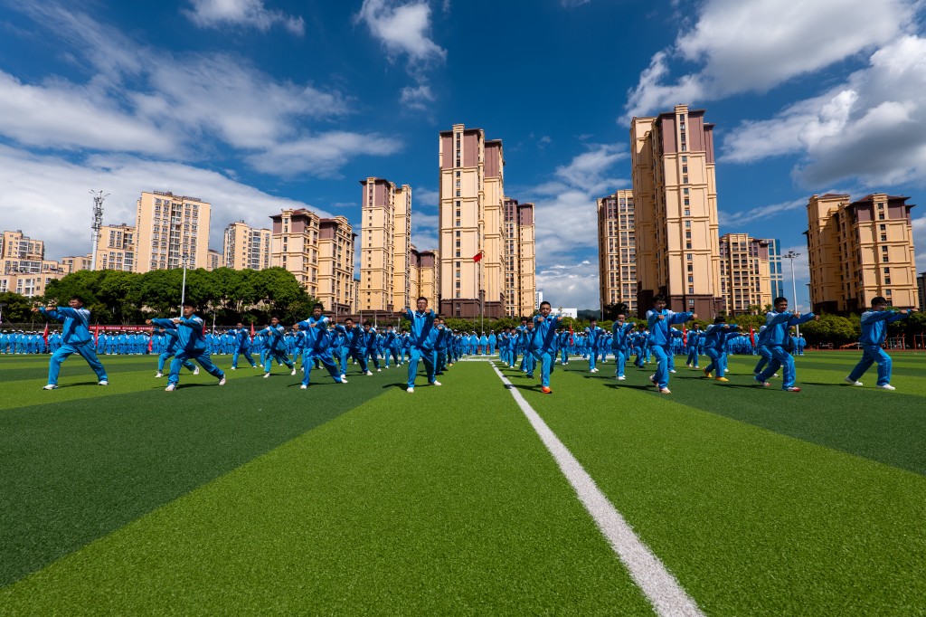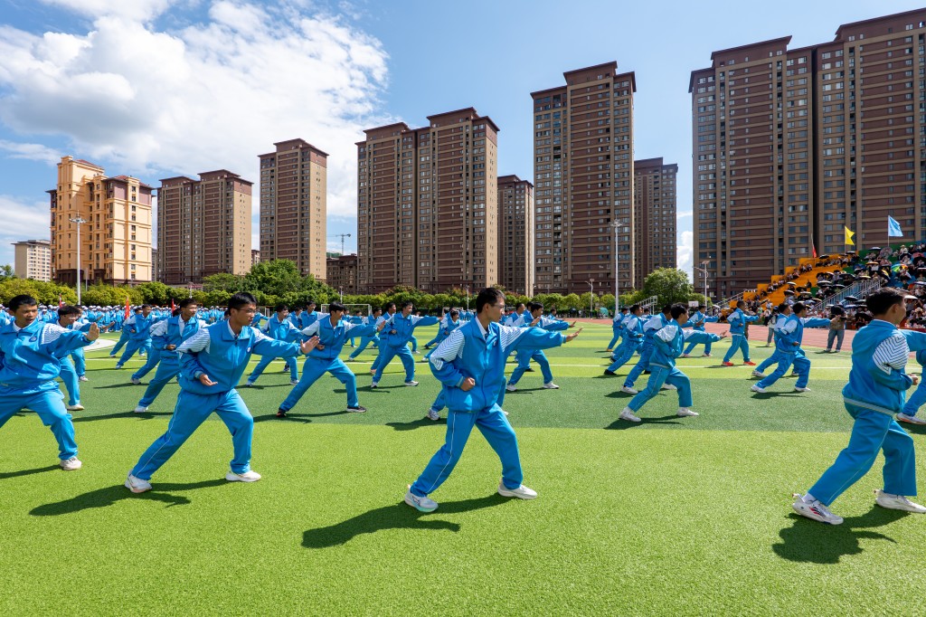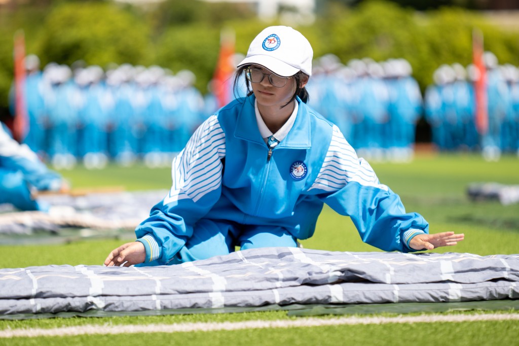 首先进行的分列式表演,步伐一致、动作规范;叠被子环节,同学们熟练运用军训所学,将被子叠成棱角分明的“豆腐块”;拳术与匕首操表演中,大家精神抖擞、声震全场、斗志昂扬。新生们以蓬勃朝气,向学校、老师、教官和家长汇报了一周军训成果,尽显当代学子风采。