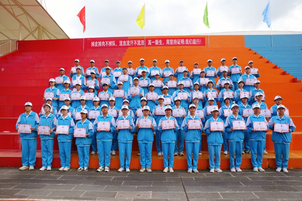 高一年级主任常家跃老师宣读了《关于表彰2025级高一新生军训入学教育测试先进班级、军训标兵、优秀教官和先进班集体的决定》,学校领导给军训先进集体、军训优秀学员、优秀教官、新生入学教育测评优秀班级颁发荣誉证书。