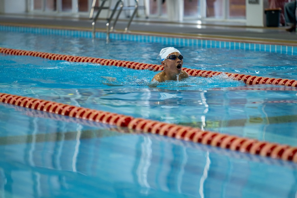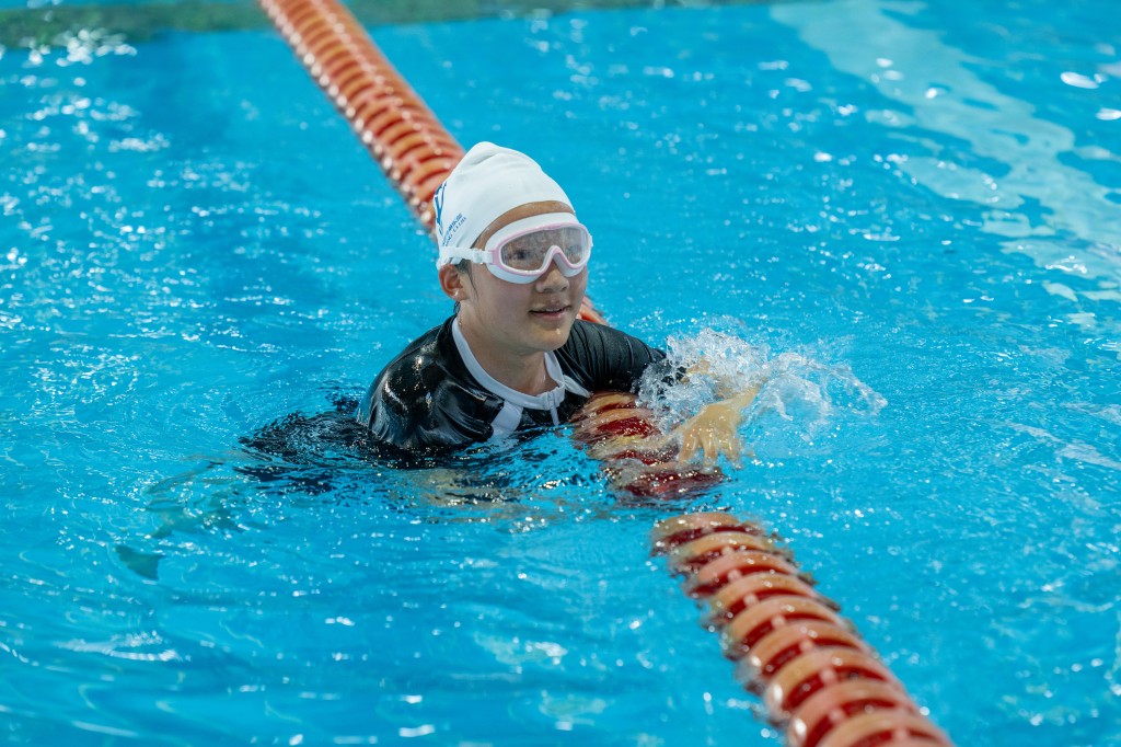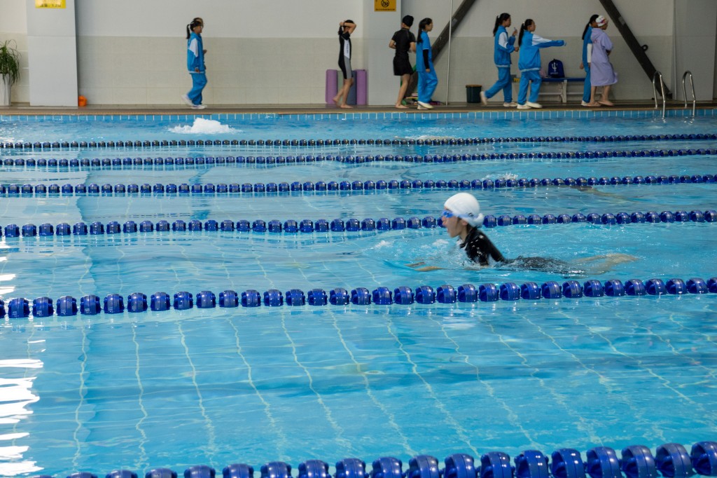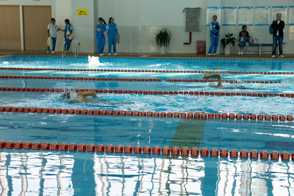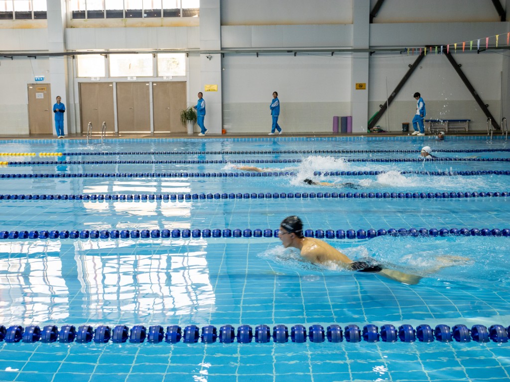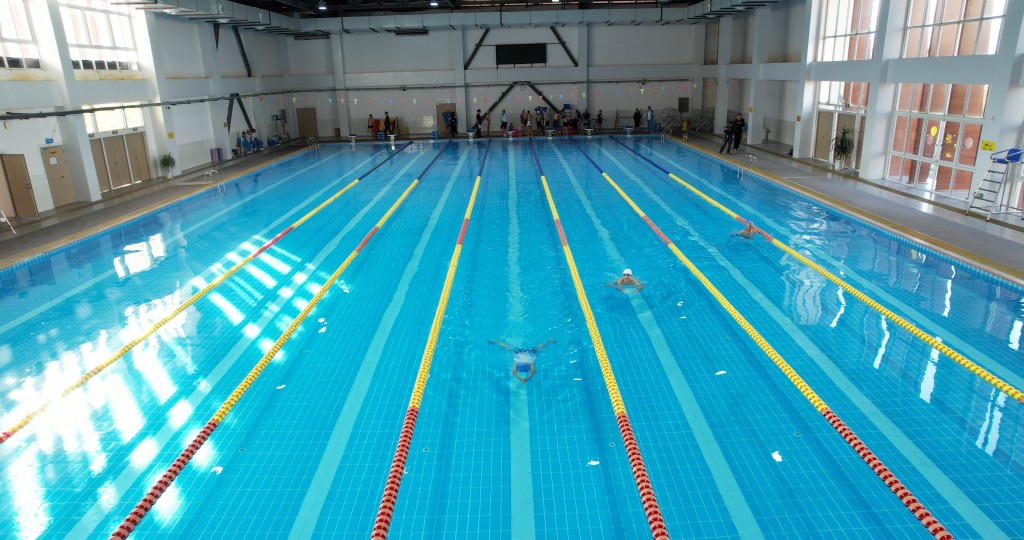 泳池之内,另有一番热血赛场。澄澈的池水泛起粼粼波光,与少年们跃动的身影相映成趣。发令哨声划破水面的宁静,参赛学子如游龙入水,双臂划开碧波,双腿蹬出浪花,在泳池中展开速度与耐力的较量。