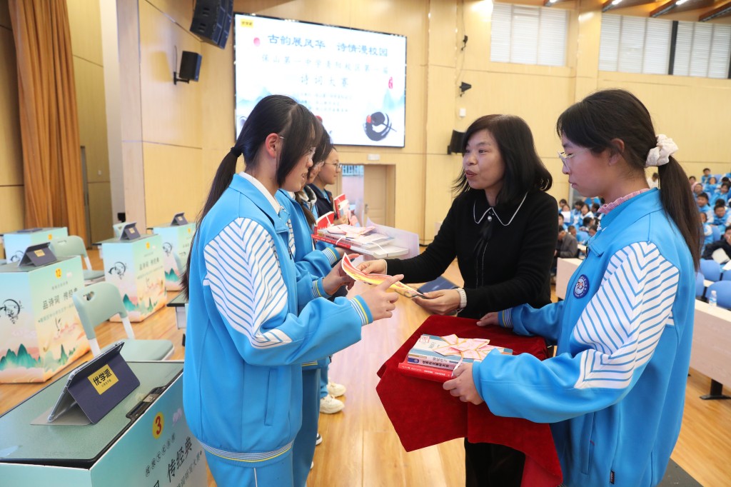 “一曲诗词穿越千年韵,满腔风雅激荡少年心。”为全面贯彻素质教育理念,深入弘扬中华优秀传统文化,营造富有书香气息的校园文化氛围,激发我校学生热爱母语、学习经典的热情。12月3日14:10,保山一中青阳校区树人堂内座无虚席,我校联合保山市新华书店、优学派共同举办的第一届古诗词擂台赛在此拉开帷幕。