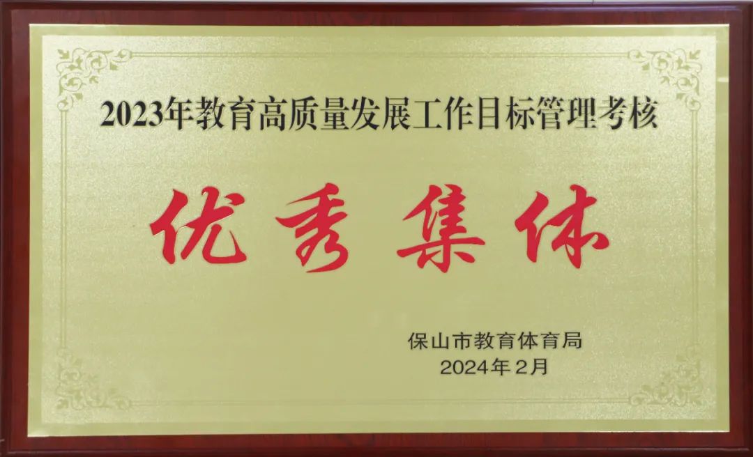 2024年2月23日,保山市教育高质量发展目标管理考评工作落下帷幕,我校荣获2023年教育高质量发展工作目标管理考核优秀集体。