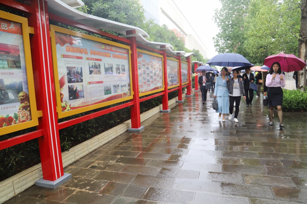 活动开始,由我校师生组建的党建文化宣讲团带领大家走进保山一中“大成党建”示范点,参观了学校的党建文化、办学历史以及办学设施,充分展现了保山一中一校一品的“大成党建”文化品牌。让在场党员同志们感受到保山一中“大成党建”的基层党建特色品牌,真正做到党建核心与教学中心同频共振、双向提升。