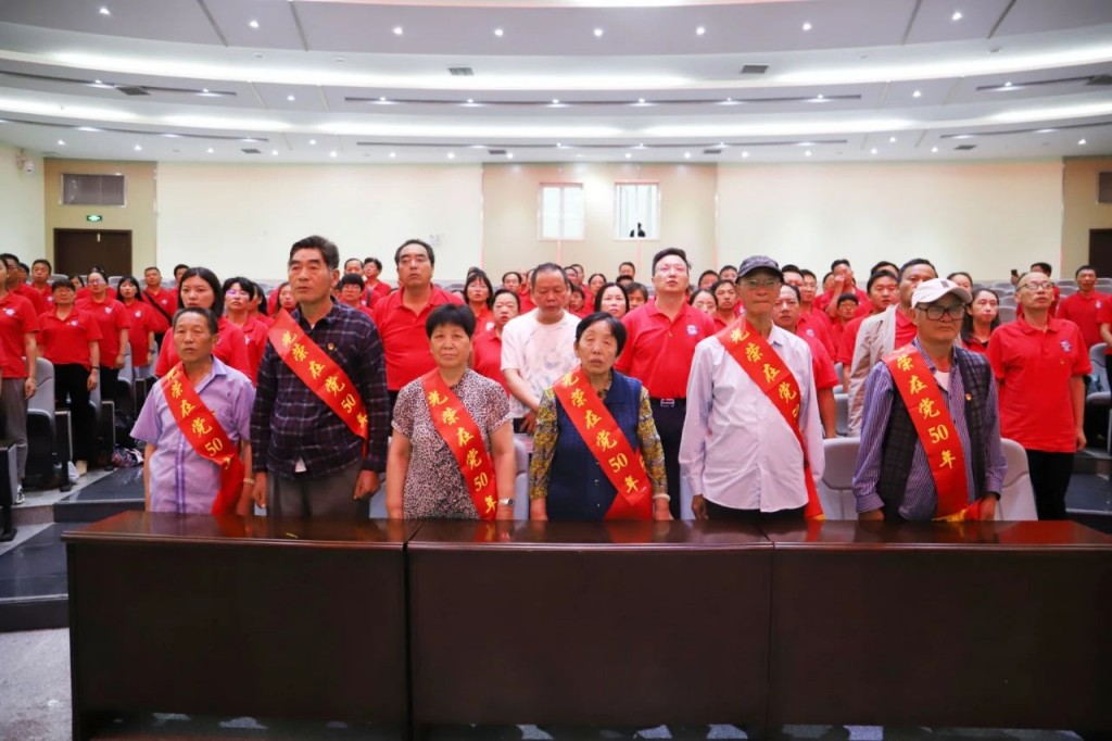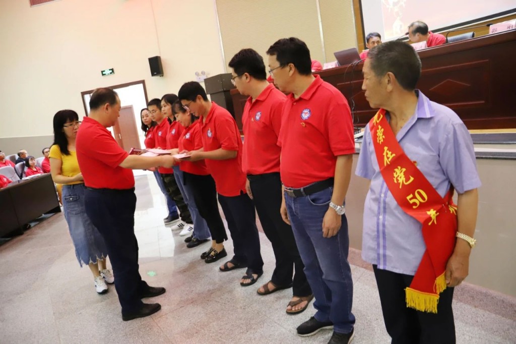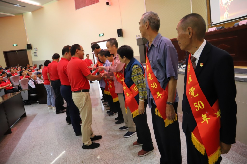 会议对“光荣在党50周年”的老党员颁发纪念奖章。