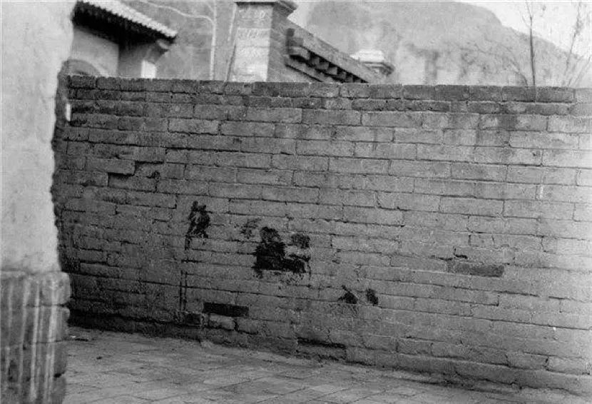 图为西安事变现场,华清池行馆的墙壁上留下的枪战血迹。