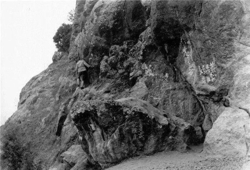 图为蒋介石被扣留的山崖,山崖上留下了国民党军政人员所书写的“蒋委员长蒙难处”。