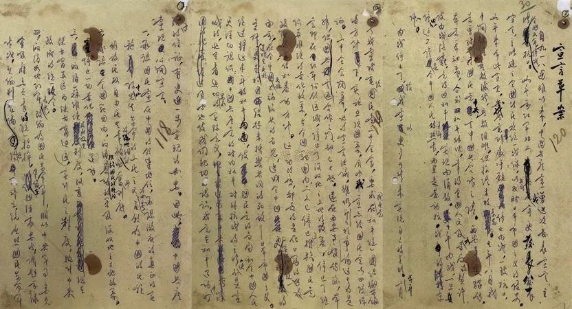 这是一份周恩来起草的《宣言》,由三张装订纸组成,尺寸相当于大开本图书。早已泛黄的纸页上,反复修改的斑驳痕迹默默述说着曾经的风云变幻。这份宣言的发表,标志着国共两党第二次合作,同时也代表着抗日民族统一战线的形成。这就是《中共中央为公布国共合作宣言》,原件收藏于中央档案馆,复制品在中国国家博物馆展出。