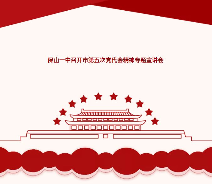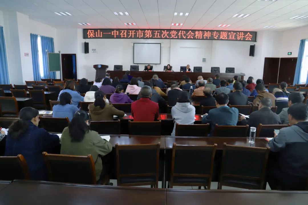 11月10日,为推动市第五次党代会精神的贯彻落实,保山一中党委邀请市教体工委书记,市教体局党组书记、局长杨云青同志到校作宣讲报告。
