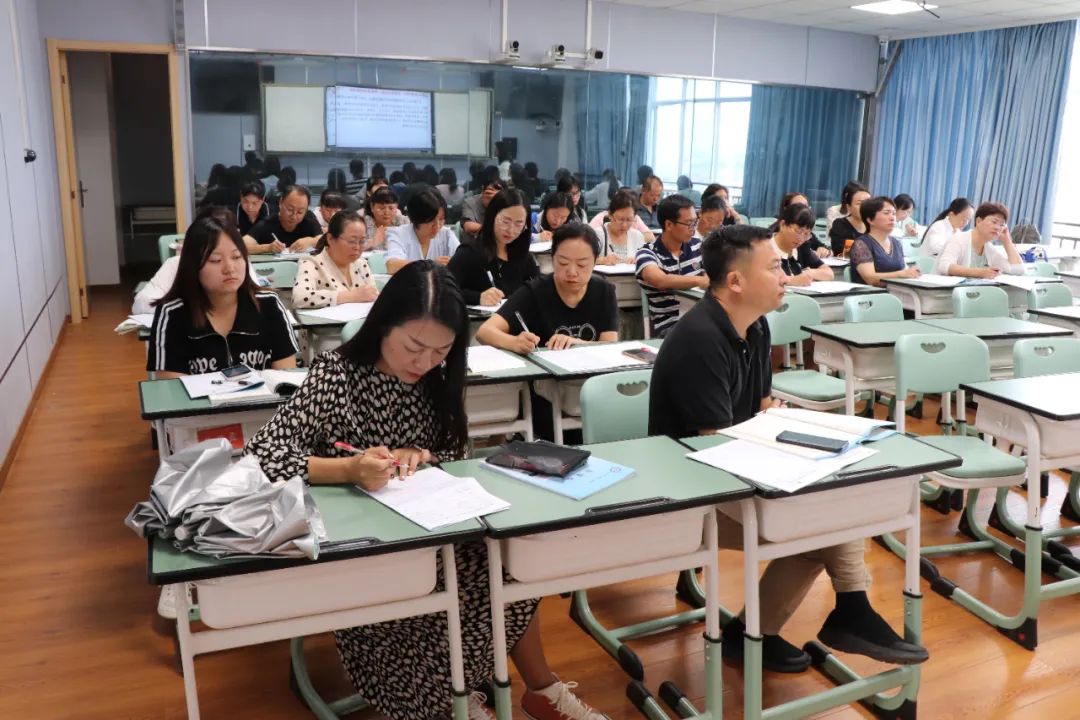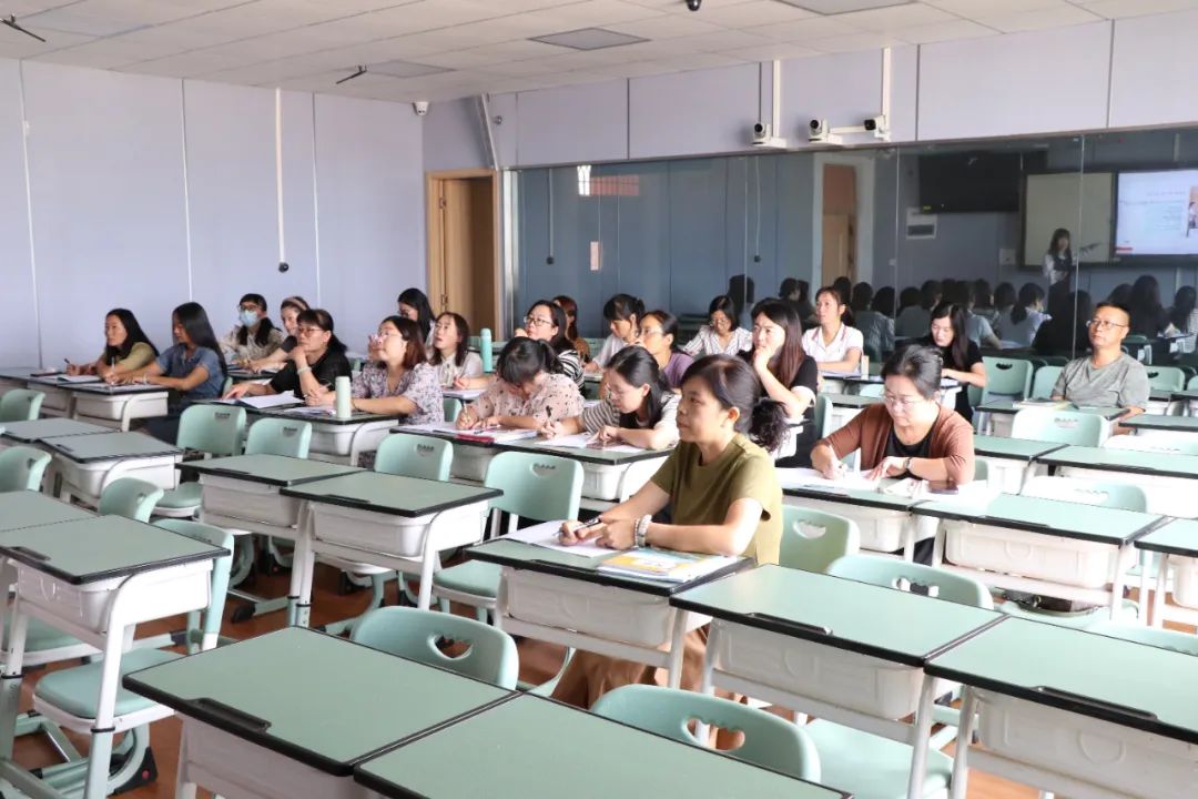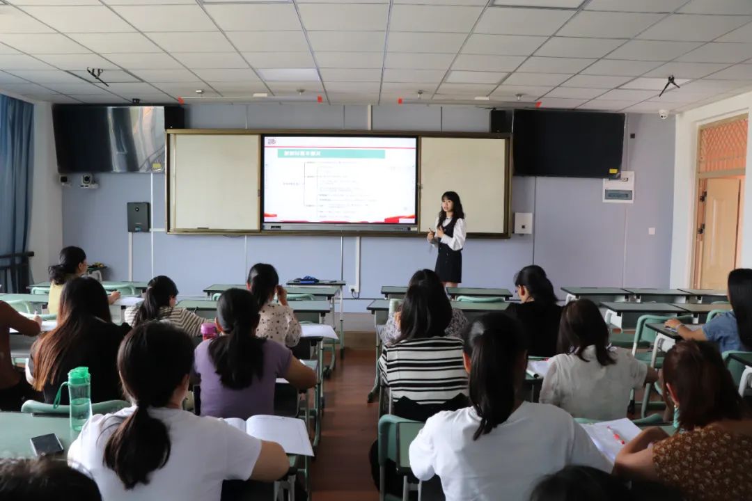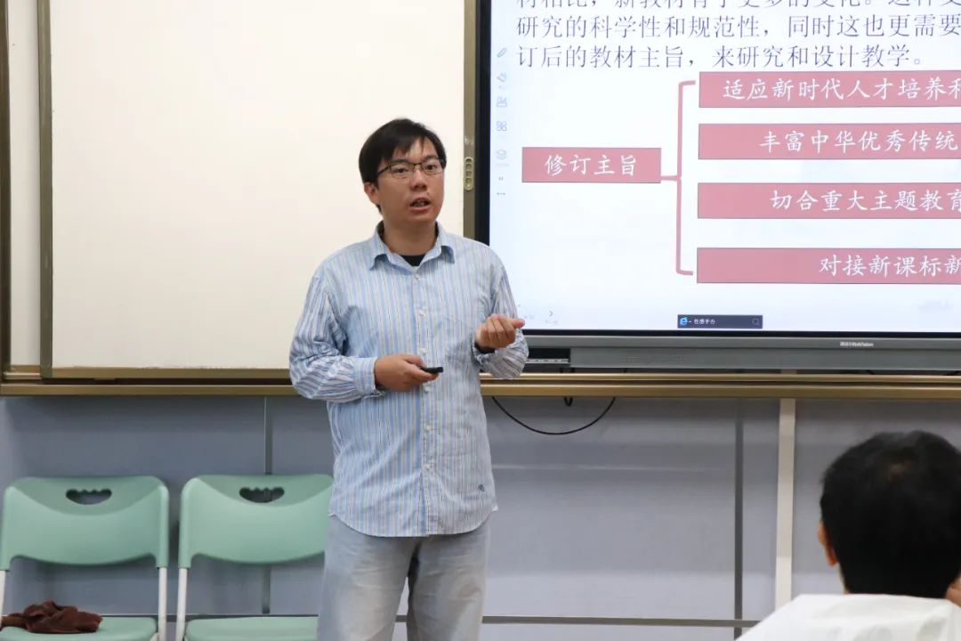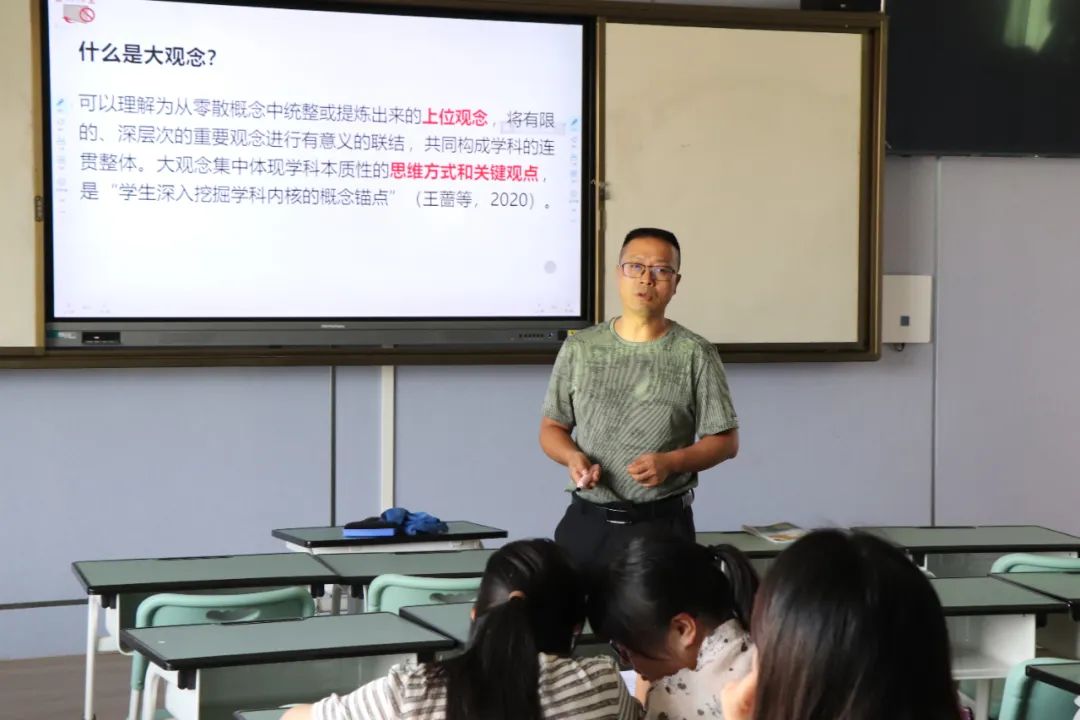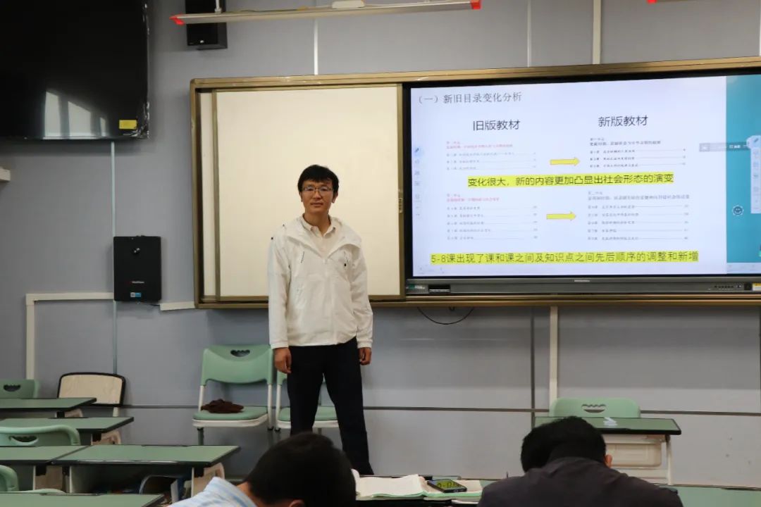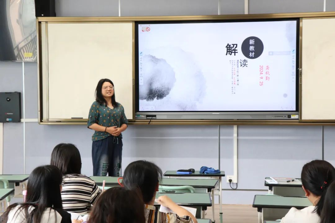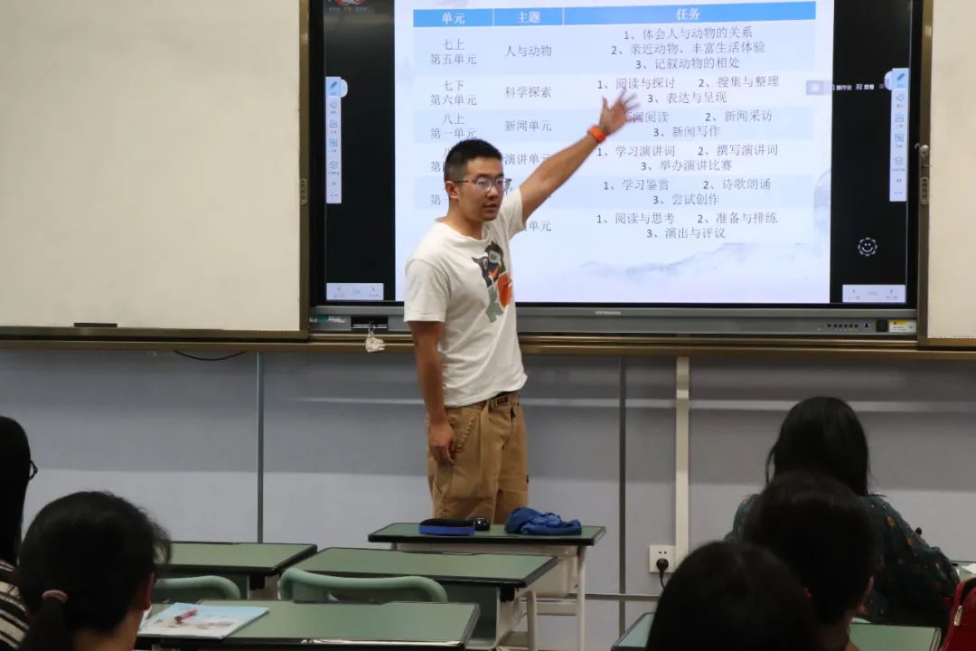 此次活动初一、初二年级语文、数学、英语、道德与法治、历史、生物、地理学科教师全员参与,每个备课组现场随机抽取 2 位老师主讲,学科教师各展风采,分别进行了30多分钟的精彩展示,巧妙地将骨干教师的市级培训成果融入其中,捕捉新教材的变化,重点以大单元为框架,以任务情境创设为路径,结合教学案例对教材进行了全面而细致的分析与解读。