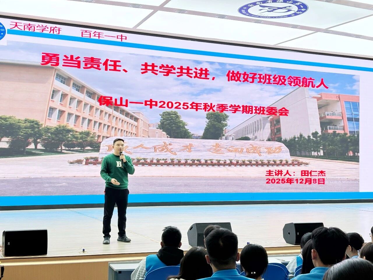 11月,德育安全处副主任张旭龙老师召集安全委员与纪律委员召开专项会议。会议紧紧围绕“全民消防、生命至上——安全用火用电”119 宣传月主题,以消防安全与逃生演练为核心,特别邀请保山市消防救援支队走进校园,开展消防安全宣传培训及实战化演练活动。通过案例分析与流程拆解,帮助委员们厘清应急处置职责,为校园消防安全筑牢“第一道防线”。